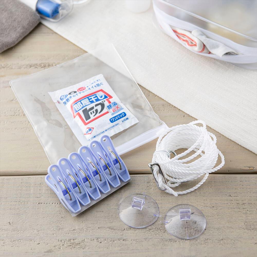 [セット内容]ロープ3m、洗剤25g、ピンチ6コ、吸盤2コ