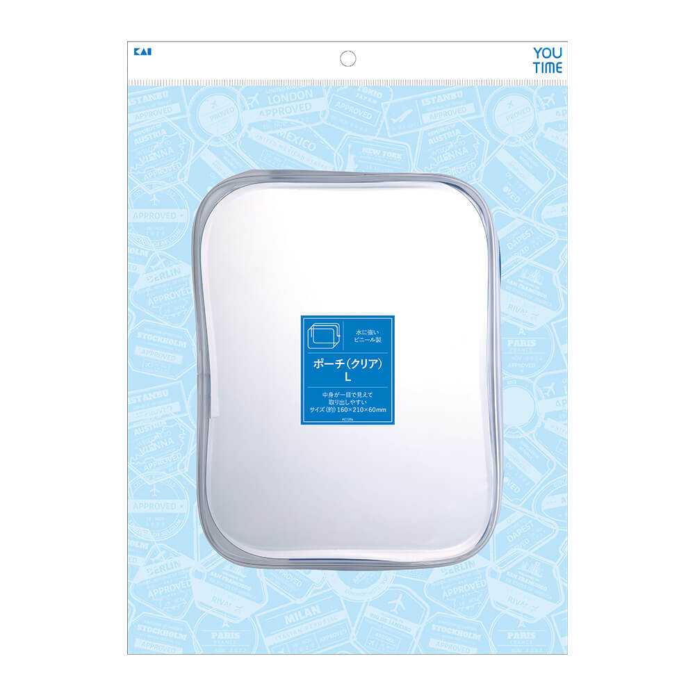 中身が一目で見えて取り出しやすい、水に強いビニール製のポーチ(クリア)Lサイズです。