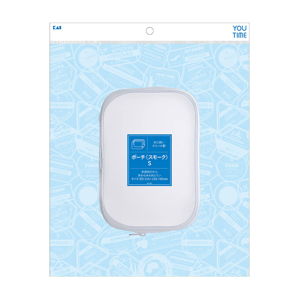 半透明だから外から見られにくい、水に強いビニール製のポーチ(スモーク)Sサイズです。