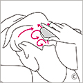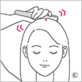 両耳から真っすぐ上がった線と、顔の中心線が交差する頭頂にあるツボ・百会(ひゃくえ)を刺激するように軽く前後左右に揺らします。