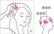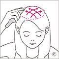 側頭筋にブラシをあてて、小さな弧を描くように揺らします。後頭筋も同様に。頭頂部は毛細血管のみで筋肉がありません。頭頂に血流を促すようなイメージで行いましょう。