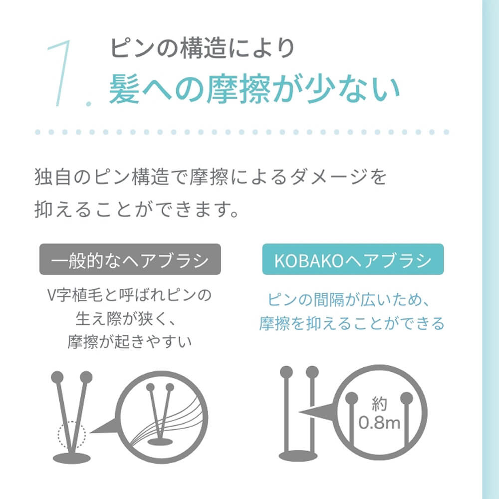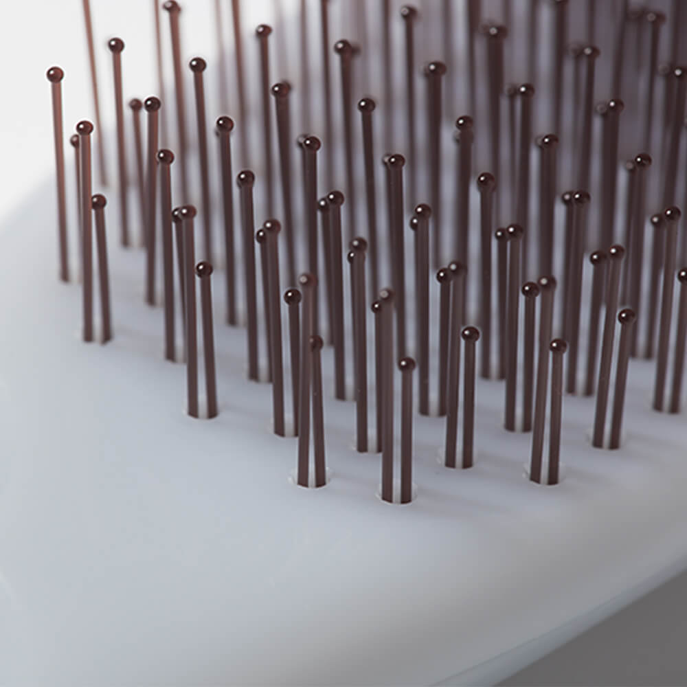 かためのピンを採用しているので、シャンプー時や頭皮を刺激したいかたに特におすすめ。プロテクションピン™を採用して、ピンとピンの間隔があることで髪の摩擦が少なく、なめらかにブラッシングできます。ピンの先は球状で頭皮を傷つけにくく、心地よく頭皮に刺激を与えます。