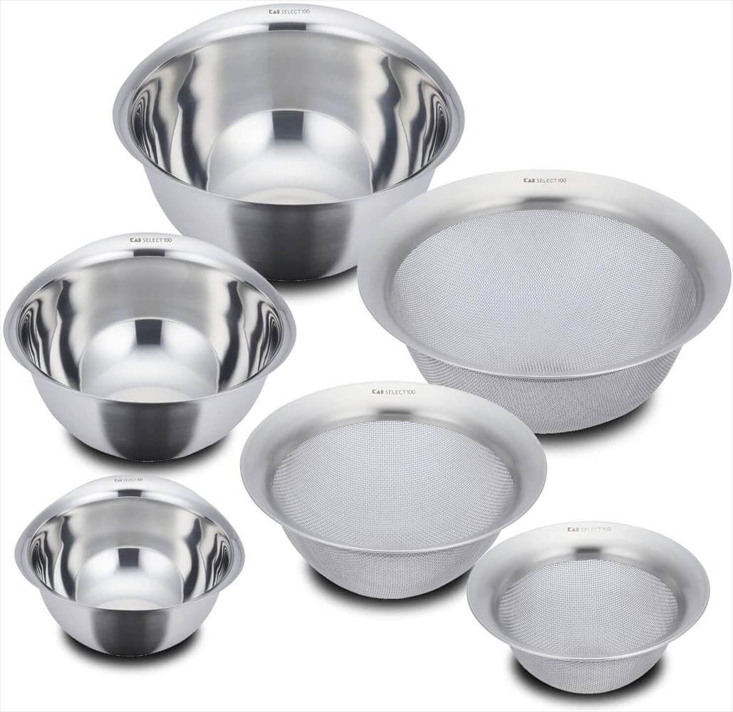 「泡立てる」「和える」「混ぜる」にちょうど良いカタチの新設計の「ボウル」と、麺類や野菜の水切りに使いやすく洗いやすい「ざる」のセットです。