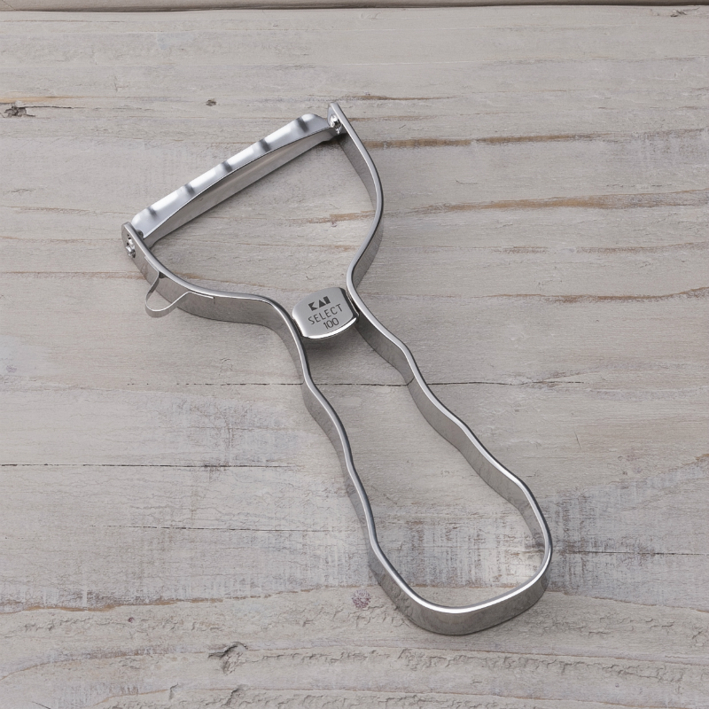 使いやすい道具はシンプルで美しく、手になじむ、それがセレクト100の考え方。料理のプロたちが厳しくチェックしたうえに考え抜かれたキッチンツールシリーズです。野菜の表面を滑るように、軽くて薄い切れ味の、斜め刃のステンレスピーラーです。セレクト100シリーズの中でも、大好評のヒットアイテムです。