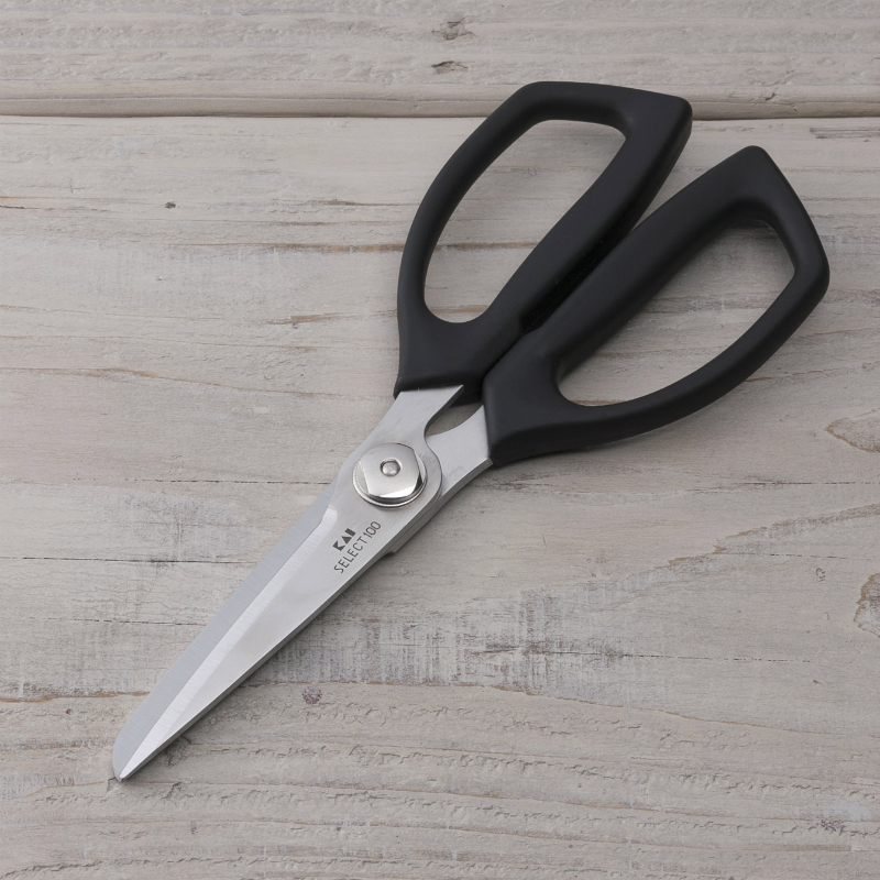 使いやすい道具はシンプルで美しく、手になじむ、それがセレクト100の考え方。料理のプロたちが厳しくチェックしたうえに考え抜かれたキッチンツールシリーズです。細刃と太刃を組み合わせ、丈夫な造りと鋭い切れ味を実現したキッチンバサミです。3.0mm厚の厚刃で滑りにくいセレーション刃を使用。