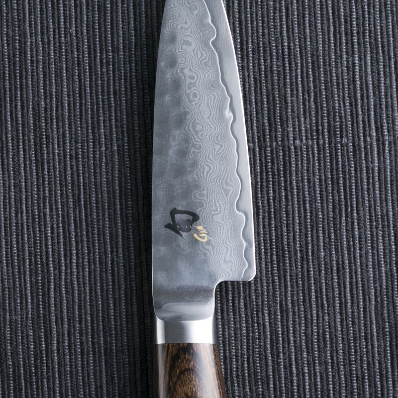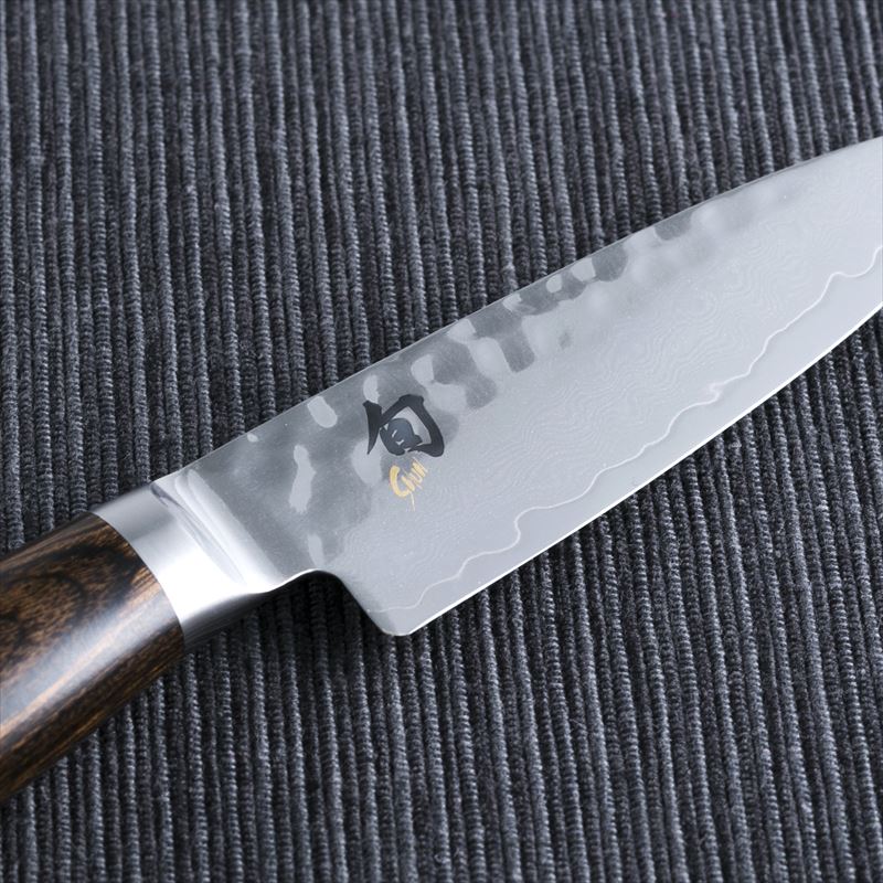 刃全体に槌目加工を施すことにより、ダマスカス模様と槌目の織り成すデザインが特徴です。刃には高硬度でかつ靱性を併せ持つVG-MAXダマスカス材を使用し、鋭い切れ味を実現しています。また、ハンドルは、積層強化木を使用した、オーバルハンドル形状を採用し、柔らかな握り心地を追及しています。※右利き・左利き兼用の包丁になります。左利きの方でもご使用いただけます。