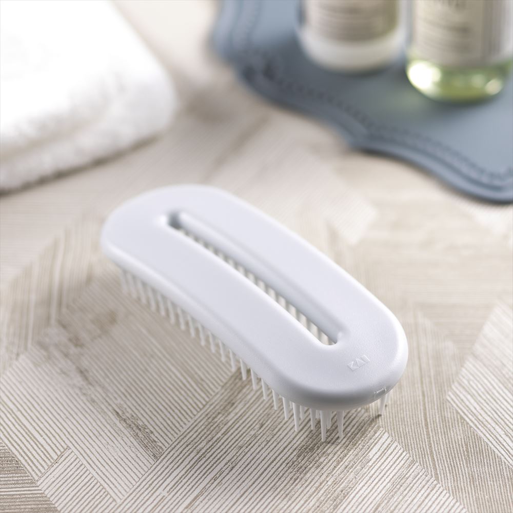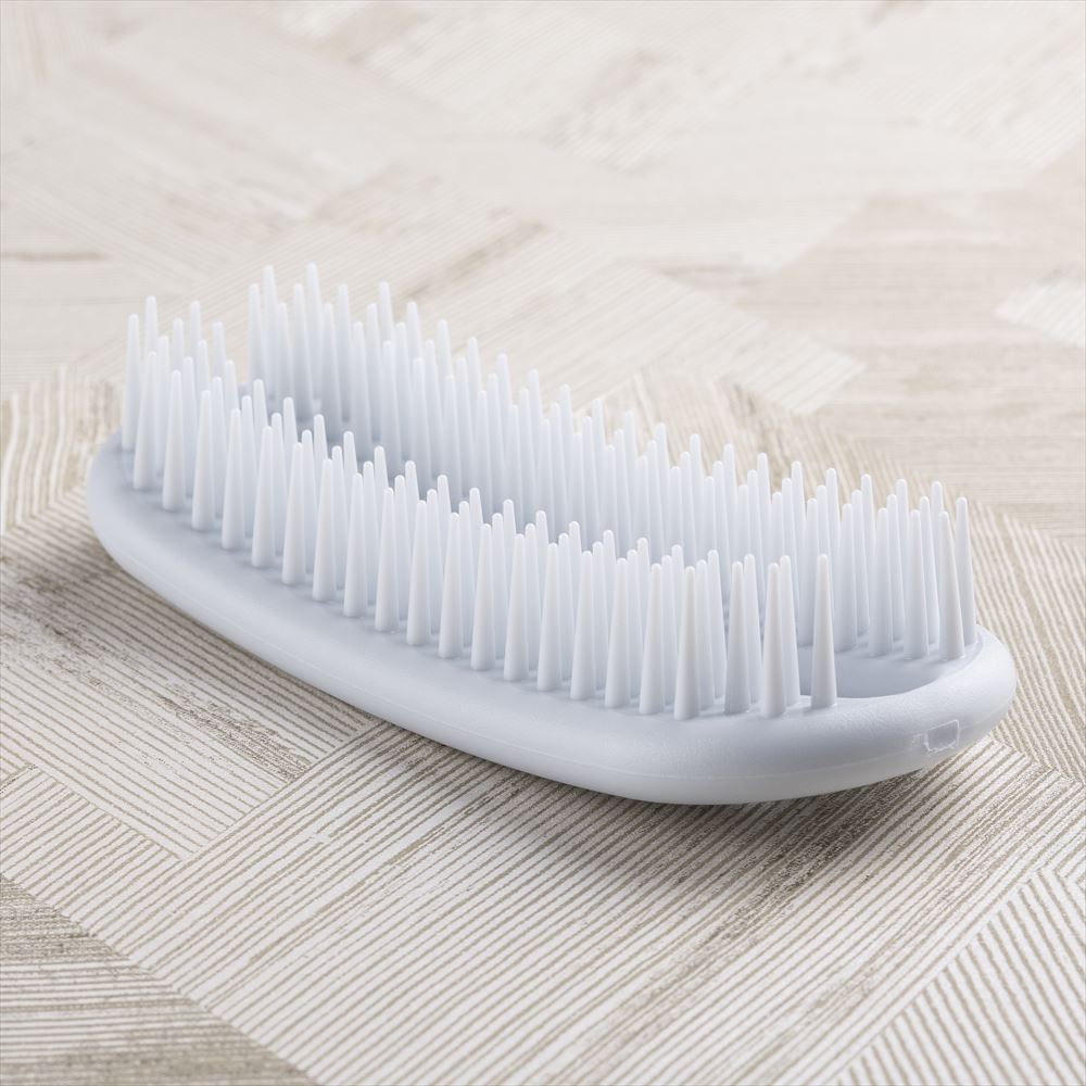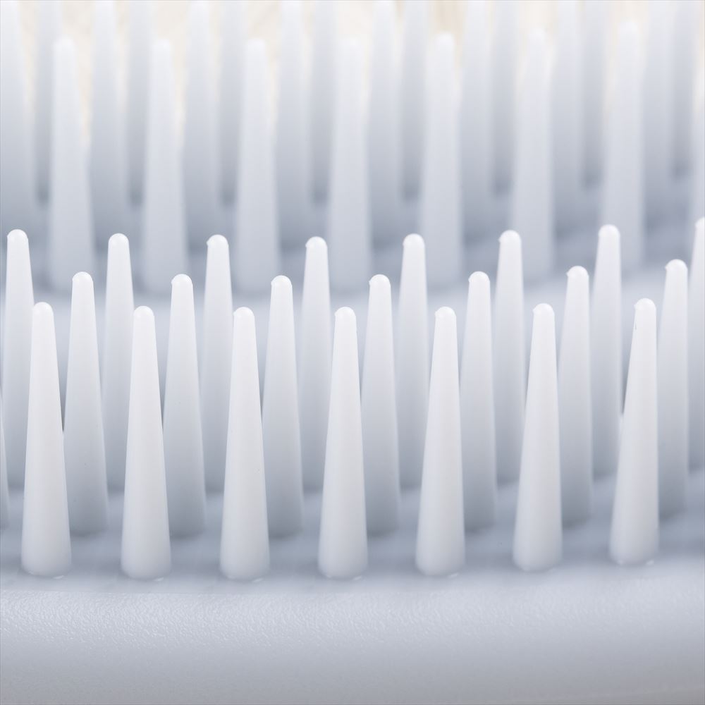 地肌のあたりがやさしいポリヘアブラシ。やさしい使い心地はそのままに、濡れ髪に特化した専用のヘアブラシです。丸洗いできて清潔にご使用いただけます。