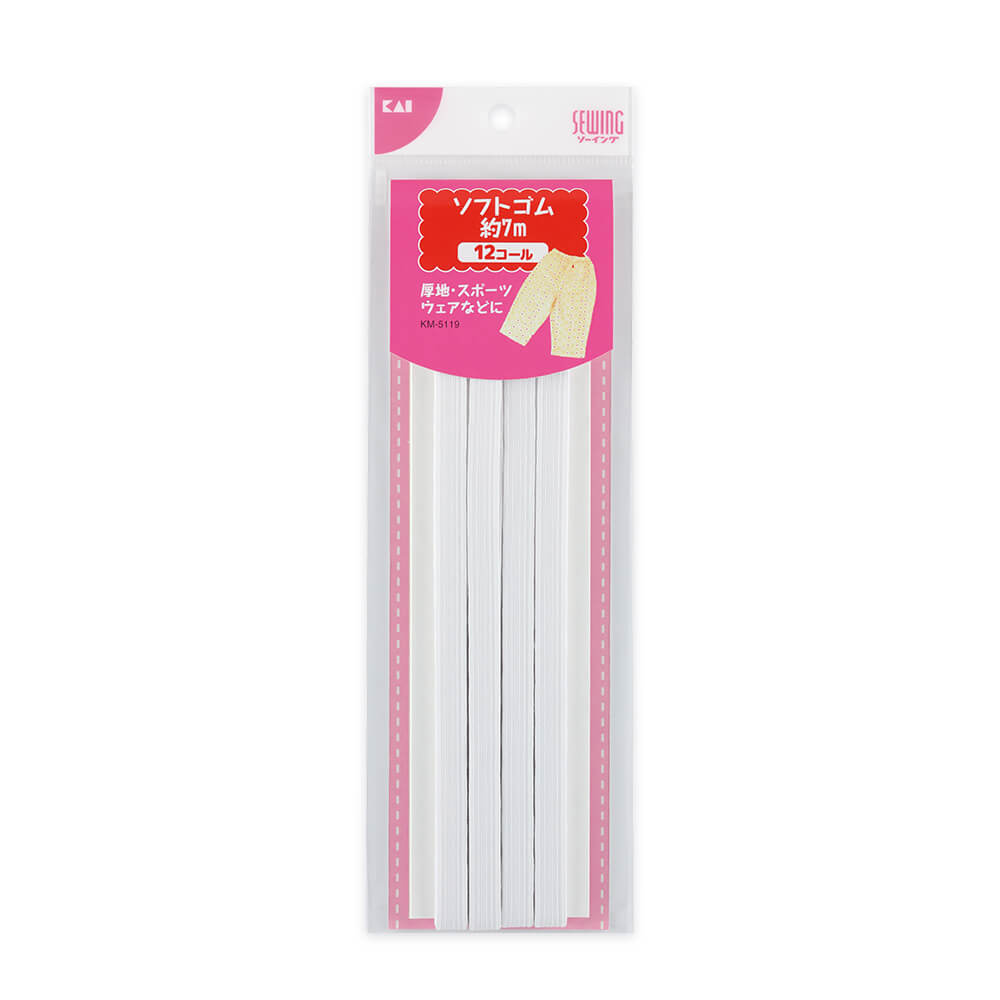 厚地、スポーツウェアなどに便利な強ソフトゴム。約7m。