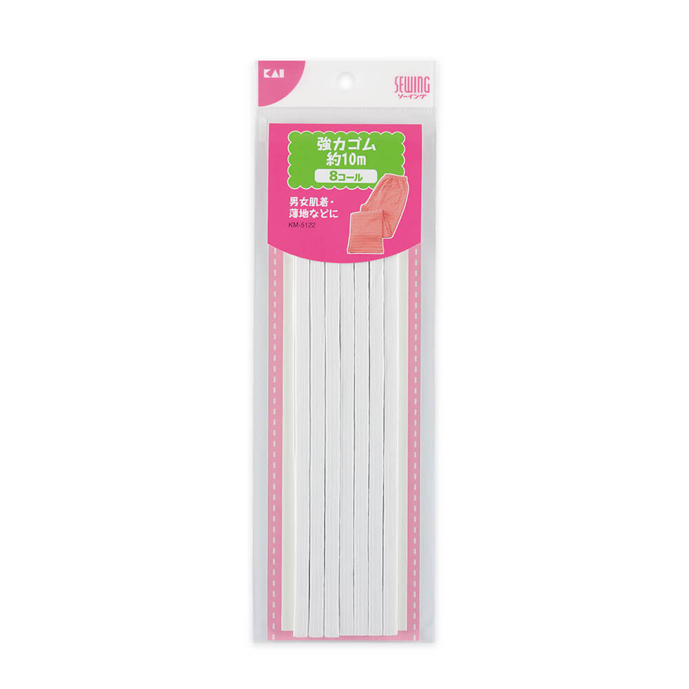 男女肌着・薄地などに便利な強力ゴム。約10m。