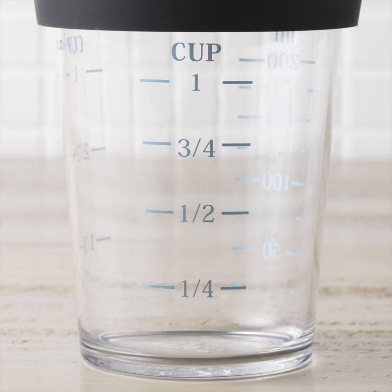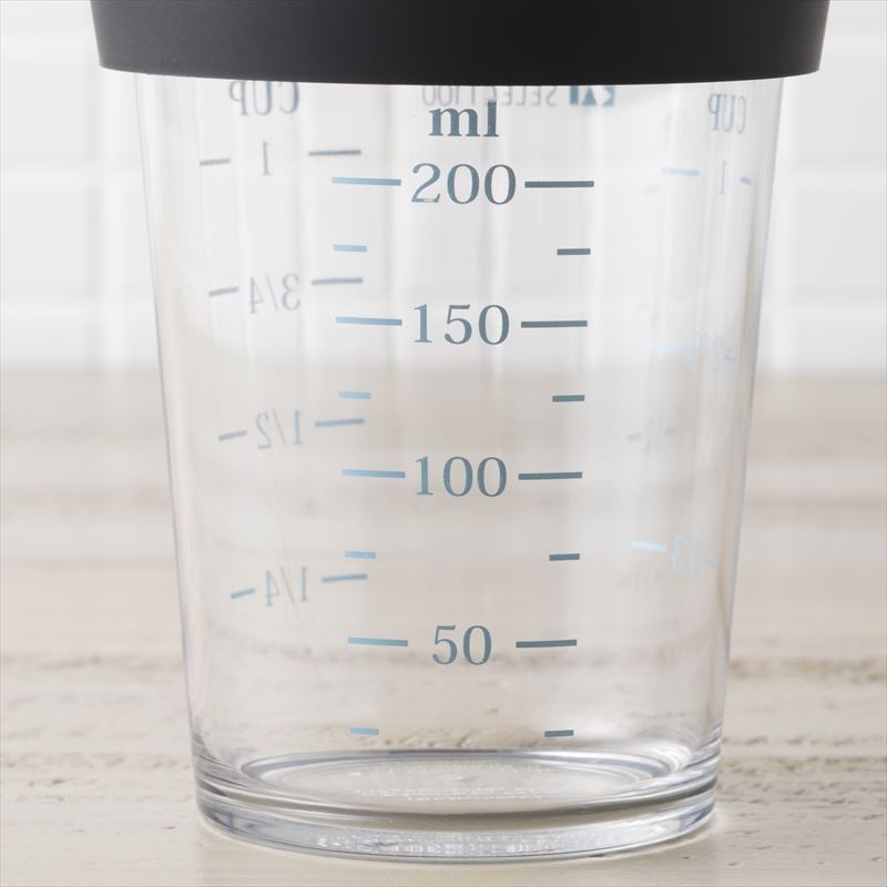 大きな文字で読みやすく、どんな調味料でも量りやすい目盛の計量カップ。