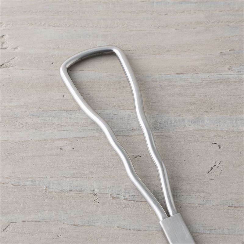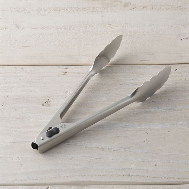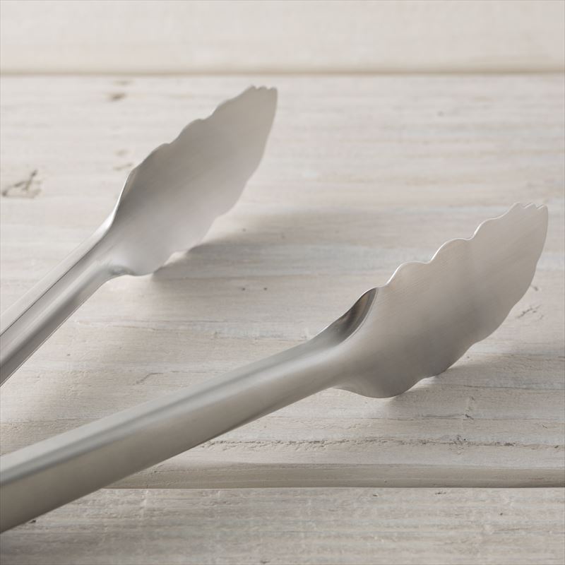 細かいものもつかみやすいよう、両側で異なる形状になっている、つかむと返すが操作しやすい箸代わりのトングです。