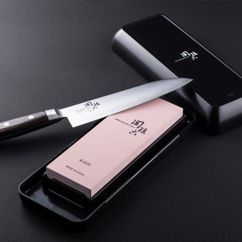 国内家庭用包丁シェア№1実績を持つ関孫六ブランドに豊富なラインナップで角砥石が新登場。中級~上級者まで満足いただける高品質の日本製でご用意しました。関孫六ブランドの高価格帯の包丁もしっかりとメンテナンス可能です。〈準備〉〈研ぎ〉〈収納〉の全工程でご使用いただけるケース付き。