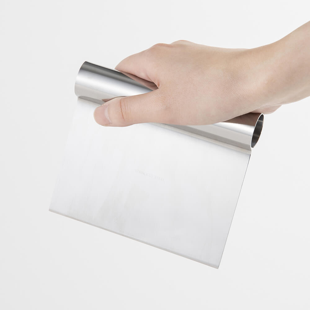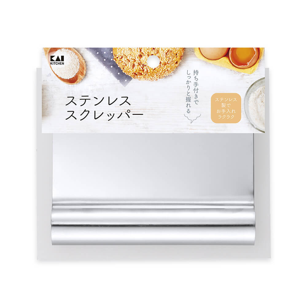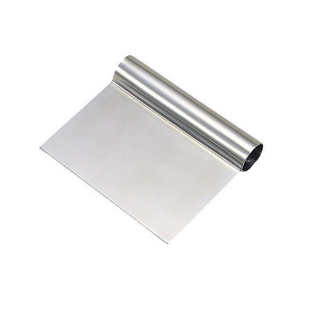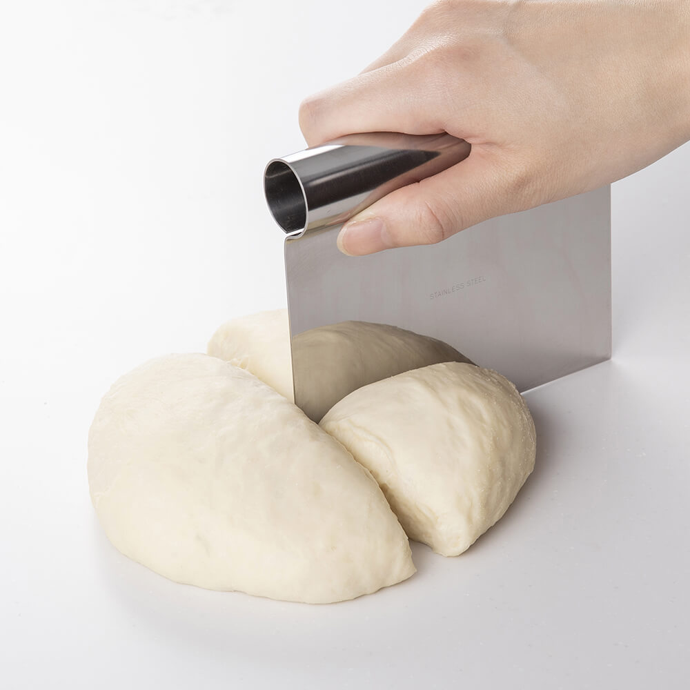 持ち手付きでしっかりと握れる、パン生地・パイ生地の捏ね合わせやカットに最適な金属製のスクレッパーです。
