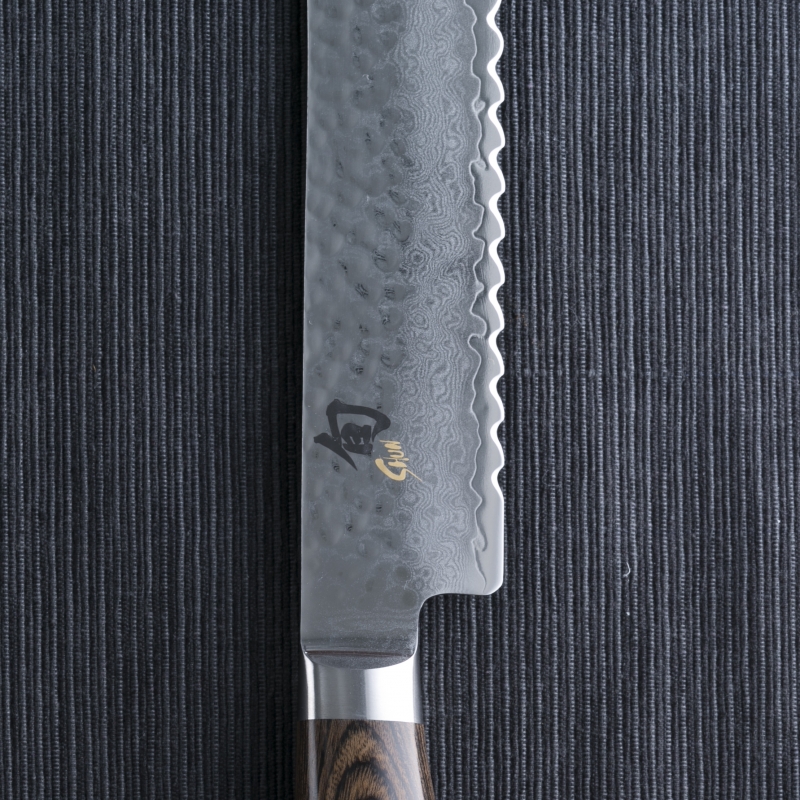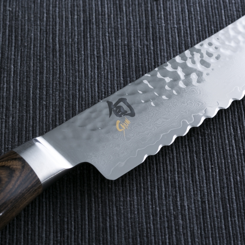 刃全体に槌目加工を施すことにより、ダマスカス模様と槌目の織り成すデザインが特徴です。刃には高硬度でかつ靱性を併せ持つVG-MAXダマスカス材を使用し、鋭い切れ味を実現しています。また、ハンドルは、積層強化木を使用した、オーバルハンドル形状を採用し、柔らかな握り心地を追及しています。
