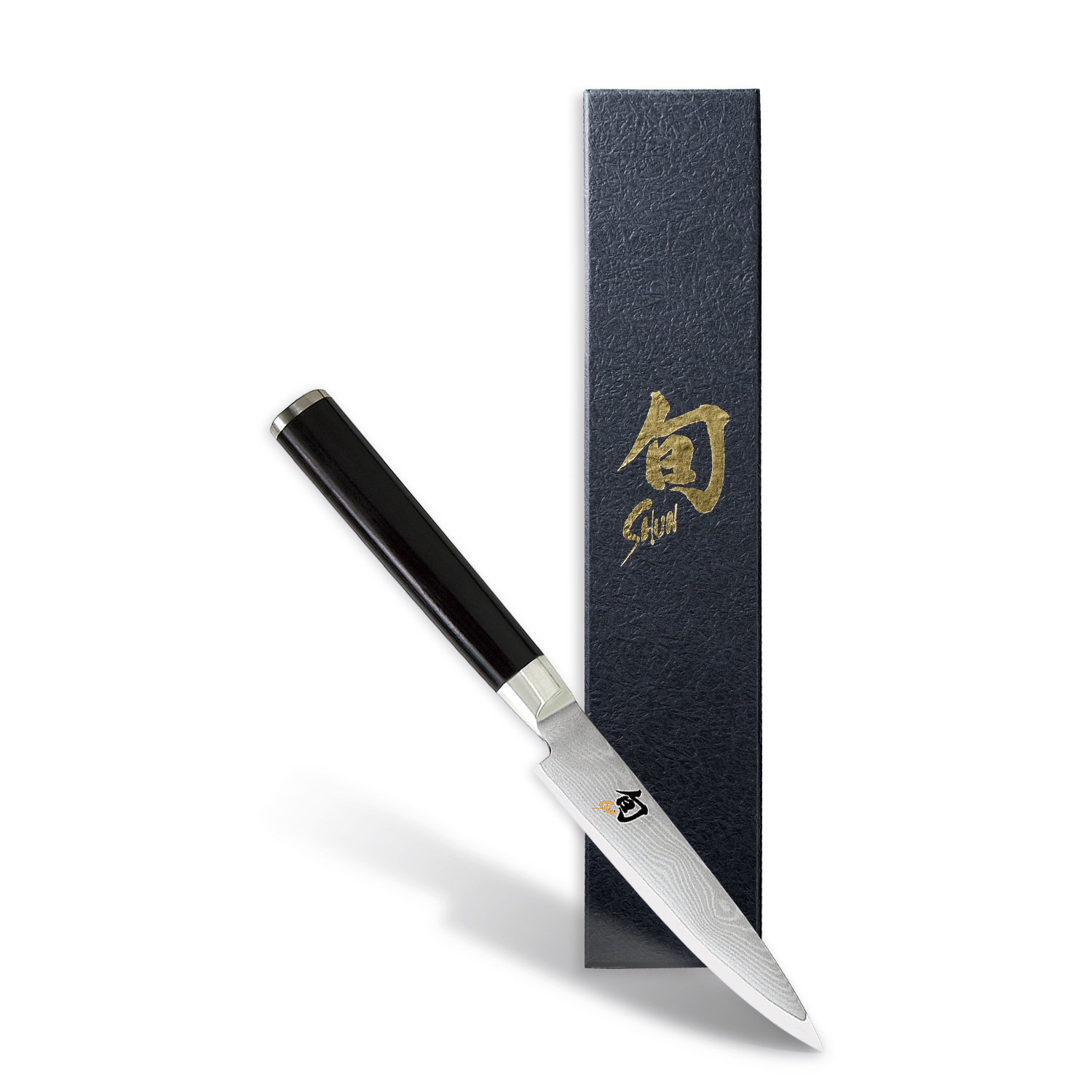 季節の移ろいをあじわい、より多彩に楽しむための包丁ブランド、「旬」。硬さの異なるステンレスを重ね合わせた33層構造により、刃体の表面に木目のように美しいダマスカス模様が広がります。貝印が長年の刃物作りで培ってきた刃付けの技術と、高硬度・高炭素のVG-MAX材を芯材に採用することで、鋭い切れ味が永く続きます。鋲を使わず美しく仕上げた積層強化木のD型ハンドルは手に程よくフィットします。 機能美を追求した道具「旬」は、台所のみならず卓上で、魅せる道具として、新しい生活に彩りを加えます。