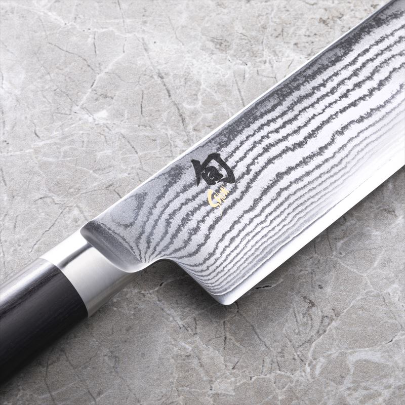 季節の移ろいをあじわい、より多彩に楽しむための包丁ブランド、「旬」。硬さの異なるステンレスを重ね合わせた33層構造により、刃体の表面に木目のように美しいダマスカス模様が広がります。貝印が長年の刃物作りで培ってきた刃付けの技術と、高硬度・高炭素のVG-MAX材を芯材に採用することで、鋭い切れ味が永く続きます。鋲を使わず美しく仕上げた積層強化木のD型ハンドルは手に程よくフィットします。 機能美を追求した道具「旬」は、台所のみならず卓上で、魅せる道具として、新しい生活に彩りを加えます。