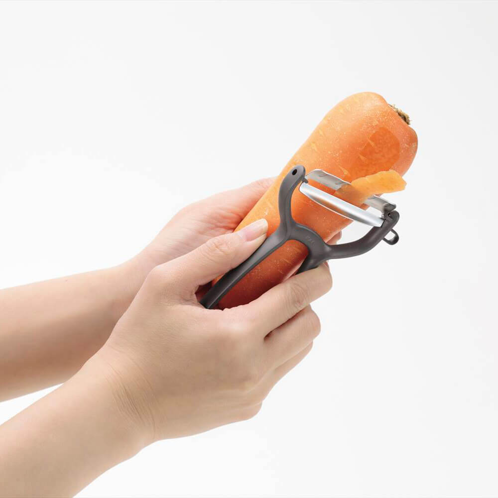 切れ味が良く、握りやすいハンドル※のシンプルなじゃがいもの芽取り付きピーラーです。(日本製)