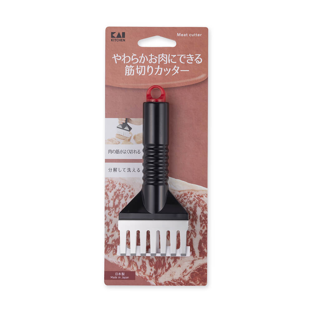 肉の筋をカットして、やわらかく仕上げるのに便利な、肉の筋切りカッターです。(日本製)
