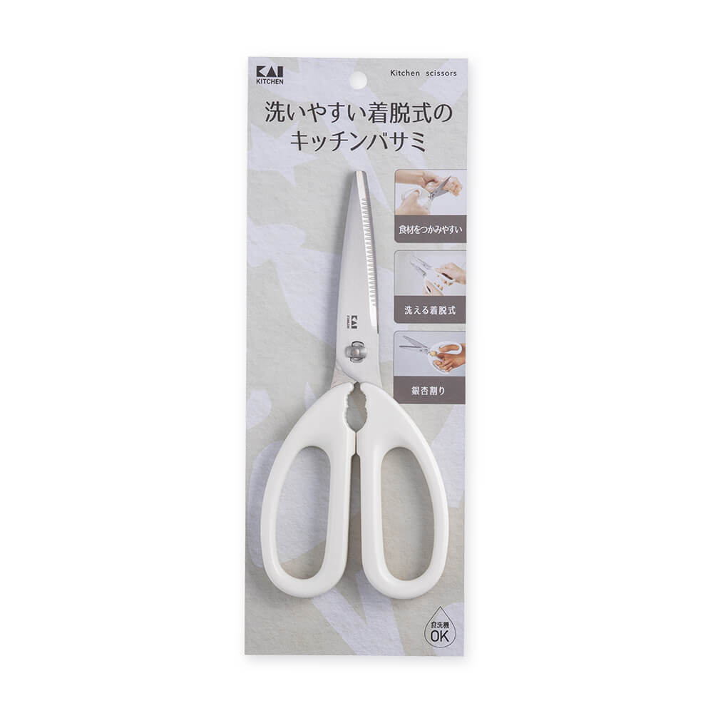 切る食材をしっかりとつかみながら切る溝付きの刃構造のキッチンバサミ。銀杏割りもできます。