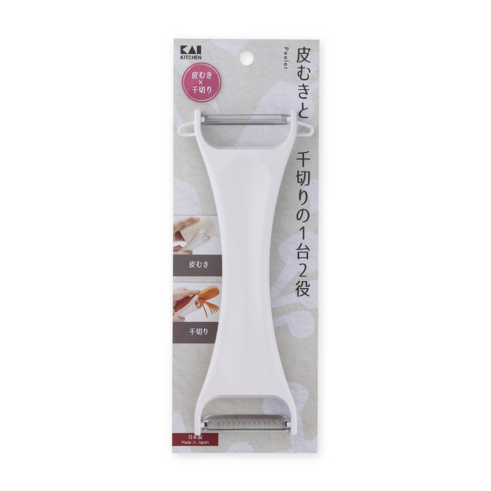 一台で千切り・皮むき両方ができる、しっかりにぎれて持ちやすいピーラーです。(日本製)