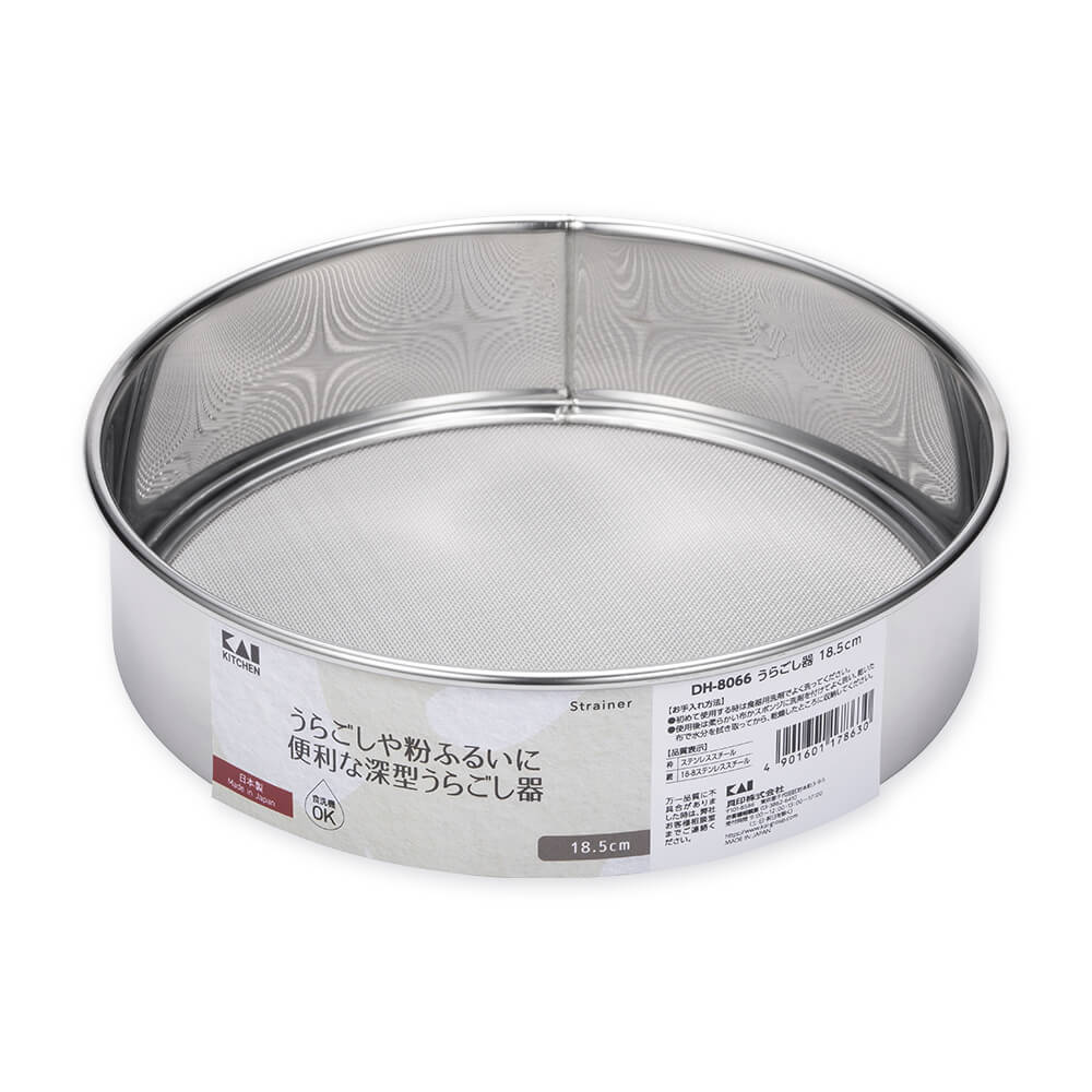 いもやかぼちゃの裏ごしや粉ふるいに便利な、18.5cmの深型うらごし器です。(日本製)