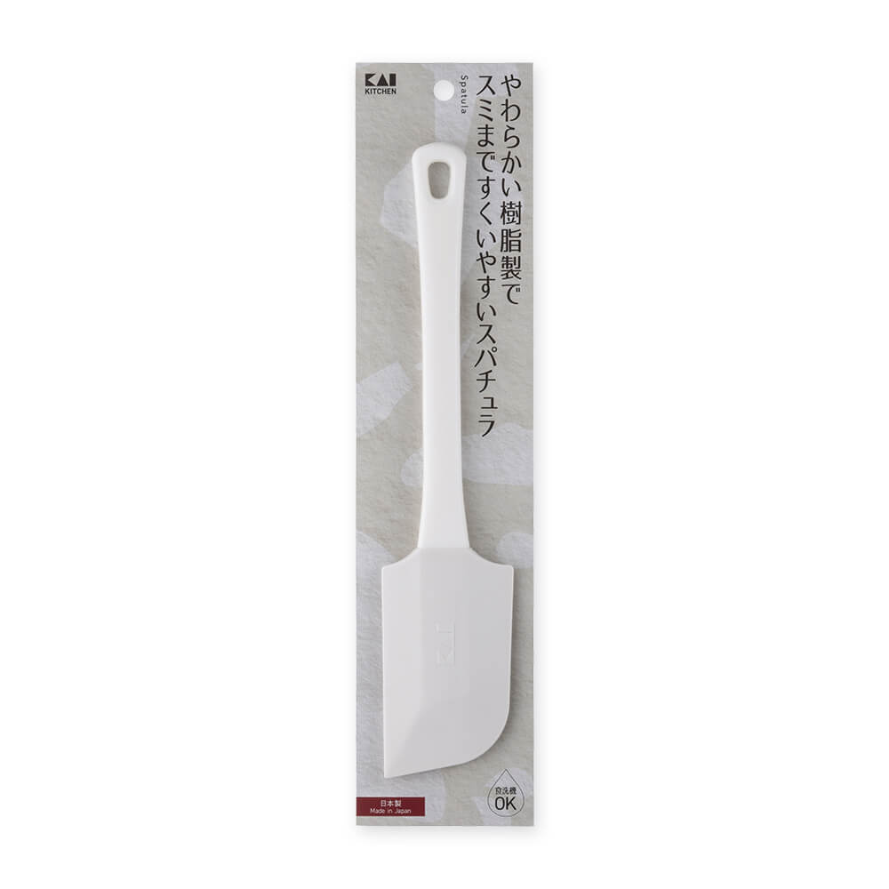 やわらかい樹脂製でスミまですくいやすいスパチュラです。(日本製)