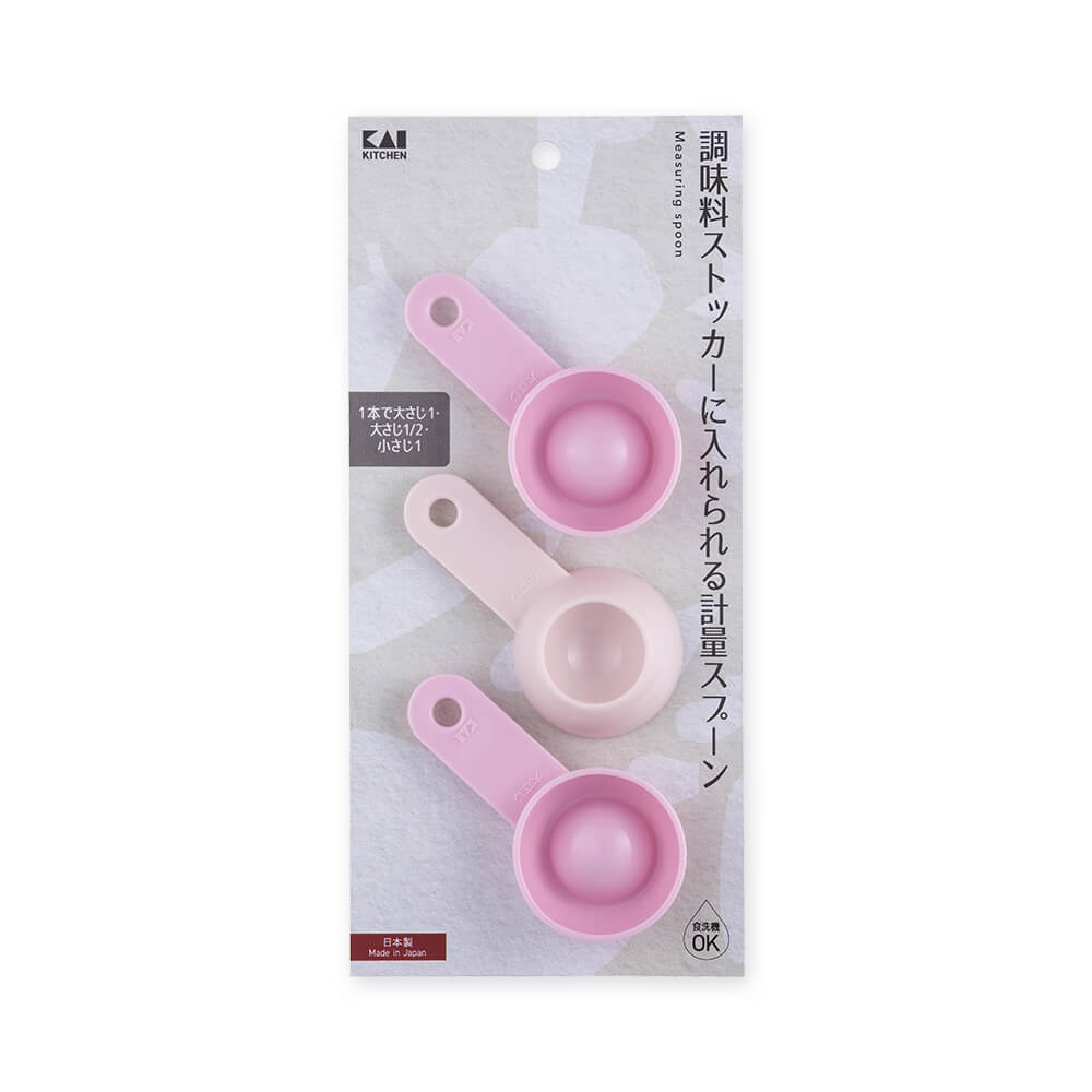 塩や砂糖など粒状の調味料ストッカーに入れておける小さめサイズの計量スプーン3点セットです。(日本製)