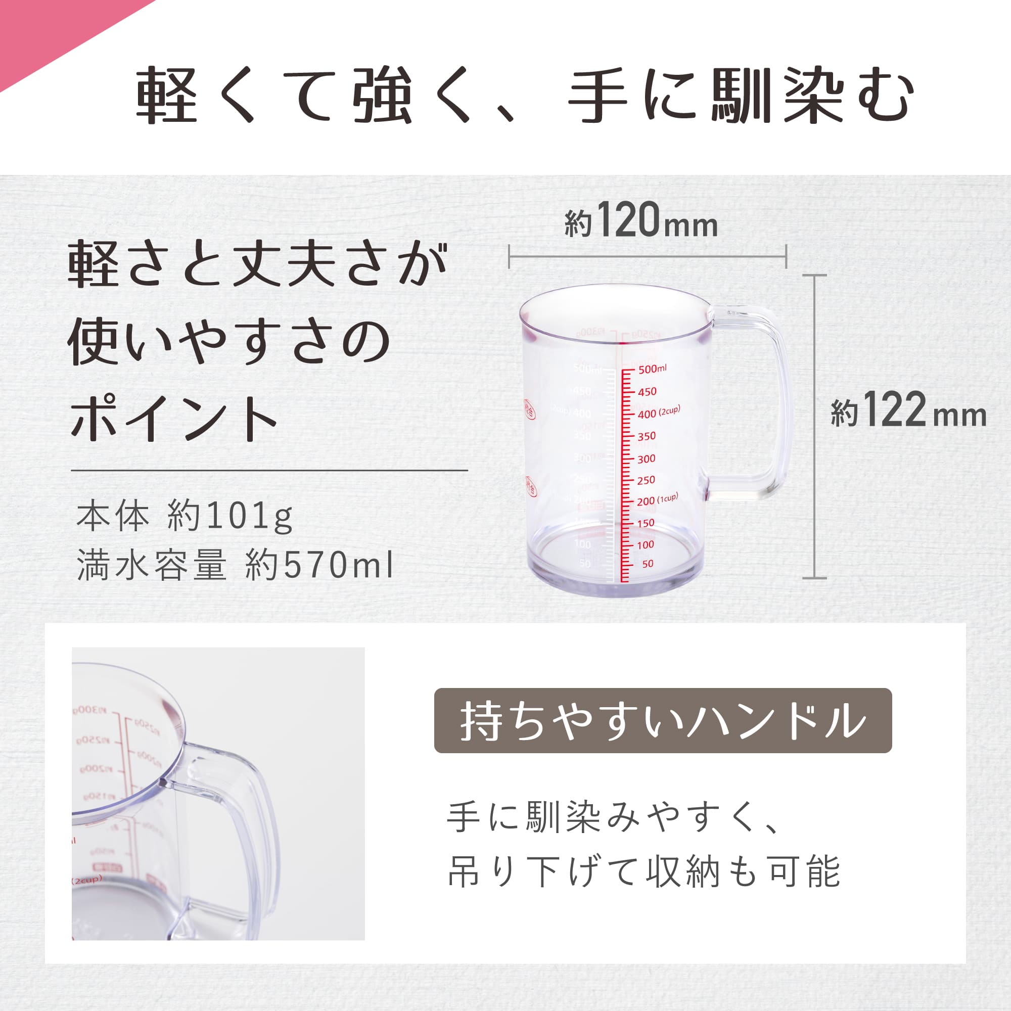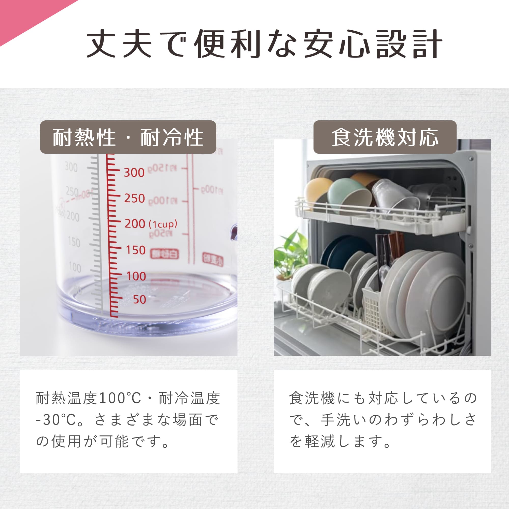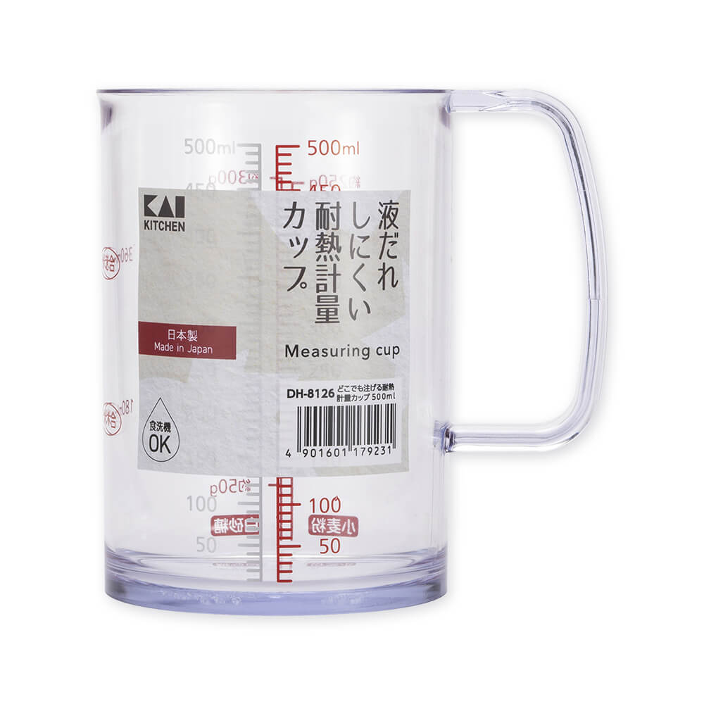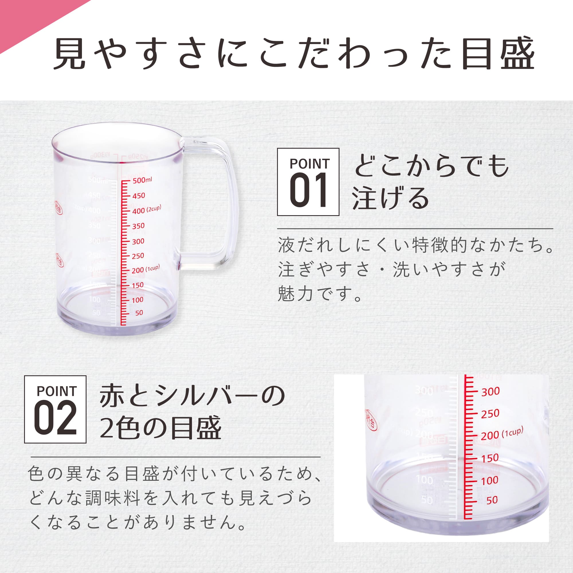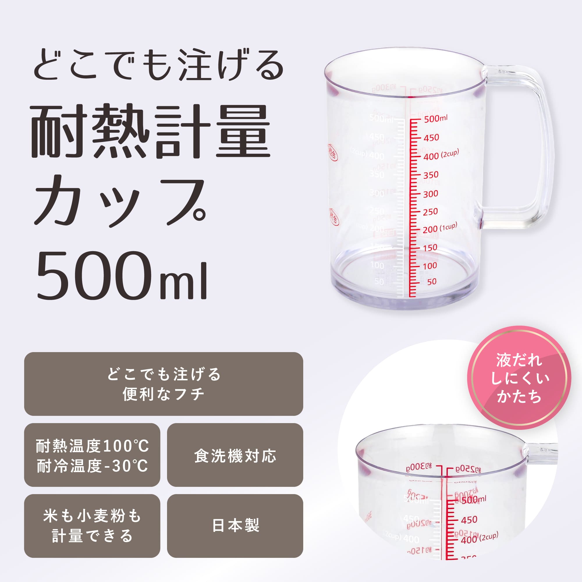 液だれしにくいかたちの耐熱性の計量カップです。(日本製)