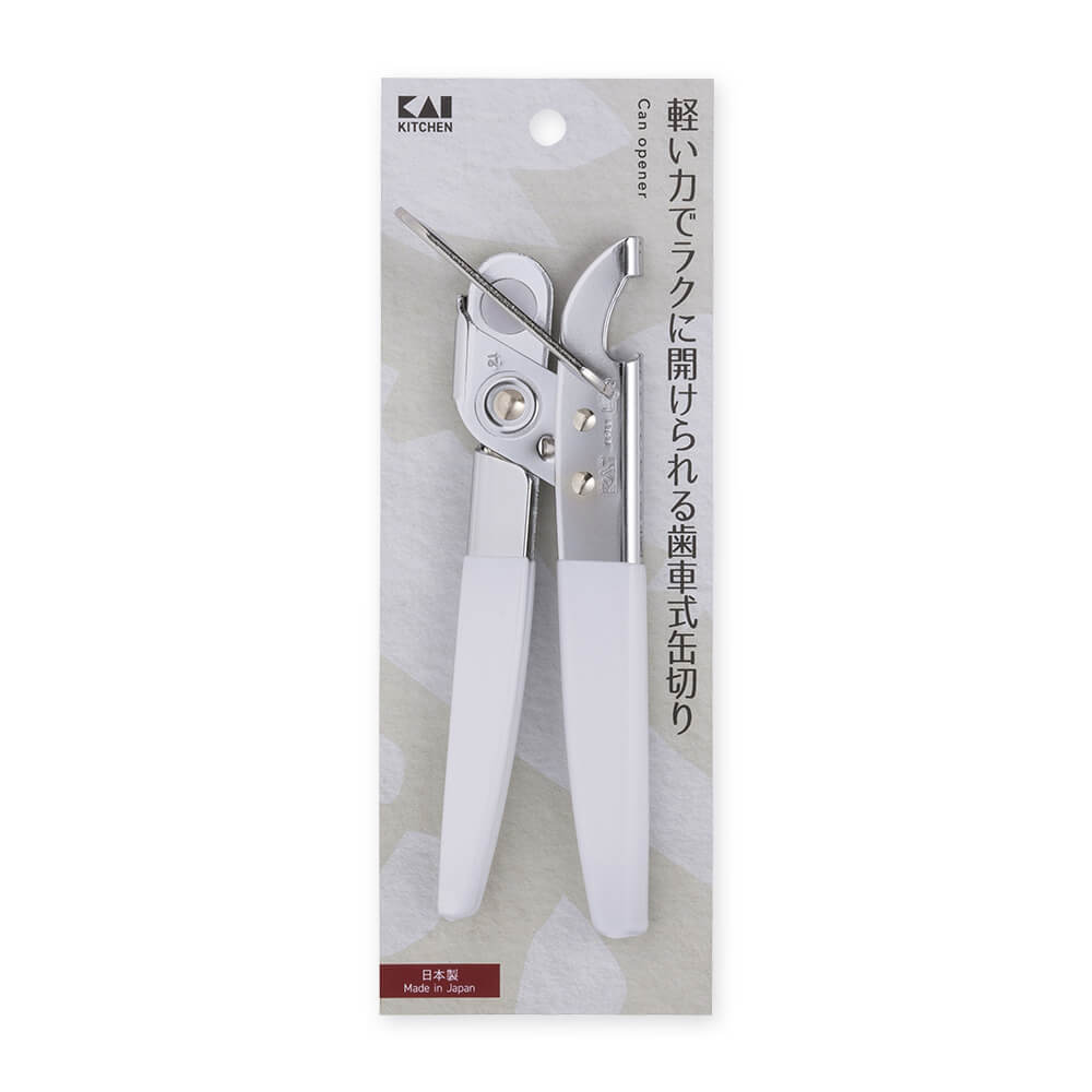 少ない力で開けられる歯車式の缶切りです。(日本製)
