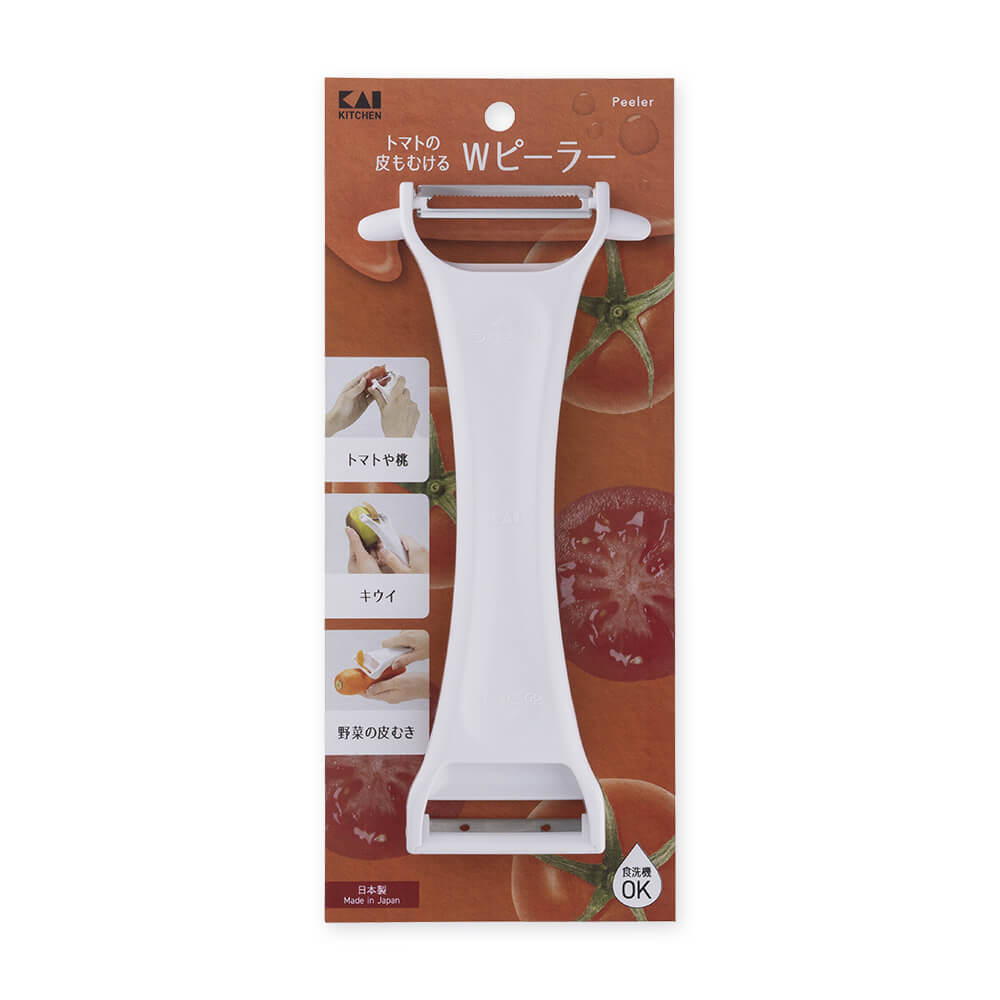 ギザ刃はトマトの薄皮むきや、実の柔らかい桃やキウイなどの皮むきに便利。ストレート刃は、野菜の皮むきができます。じゃがいもの芽取り付。
