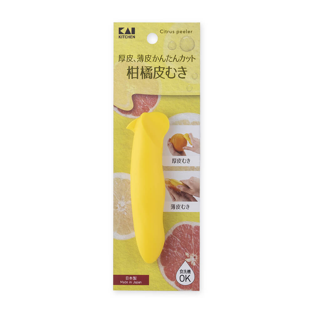 柑橘類の厚い外皮だけでなく、実の薄い皮まで簡単にカットできる、柑橘皮むきです。(日本製)