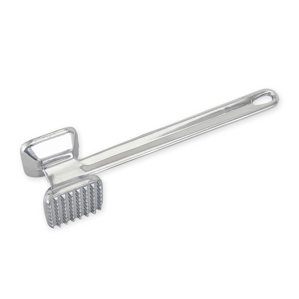 肉をのばして繊維を切るのでやわらかく仕上げることができる、肉たたきです。