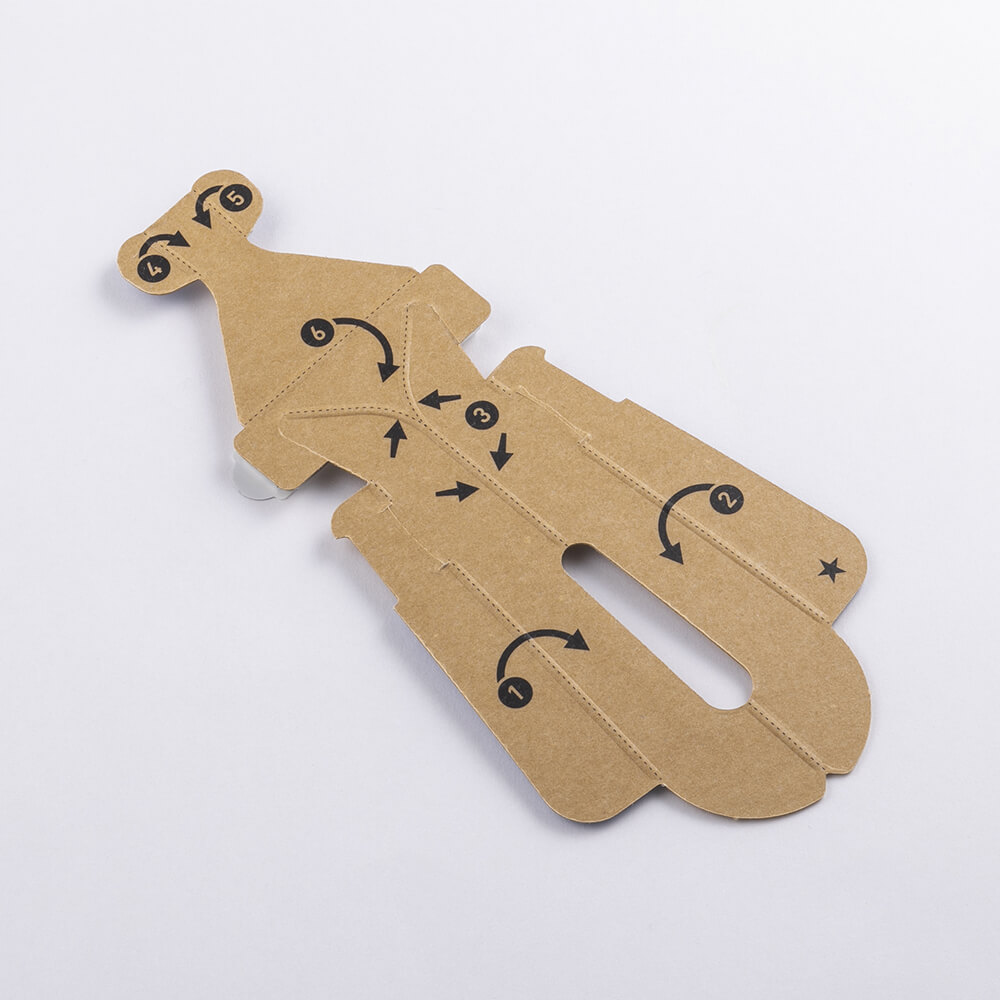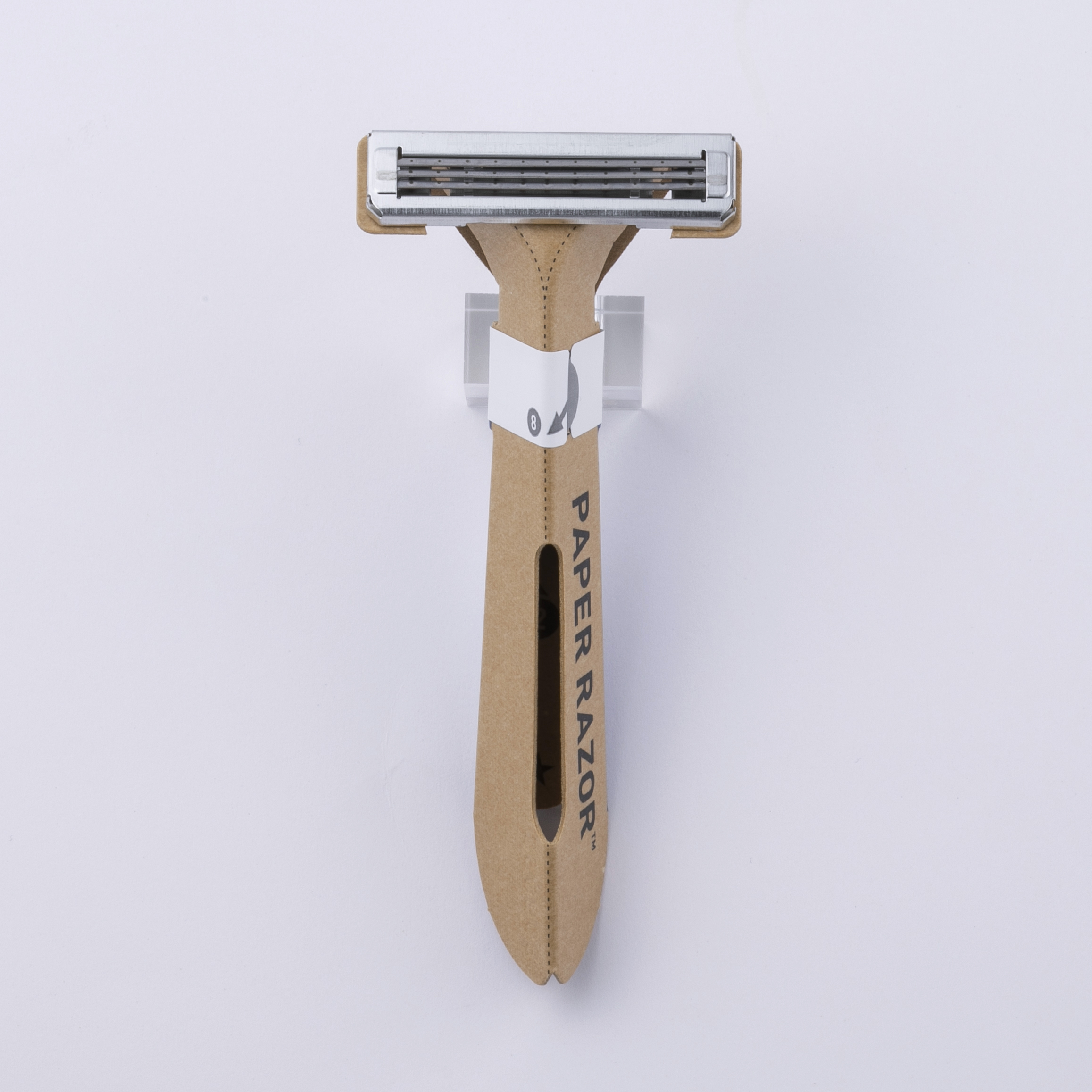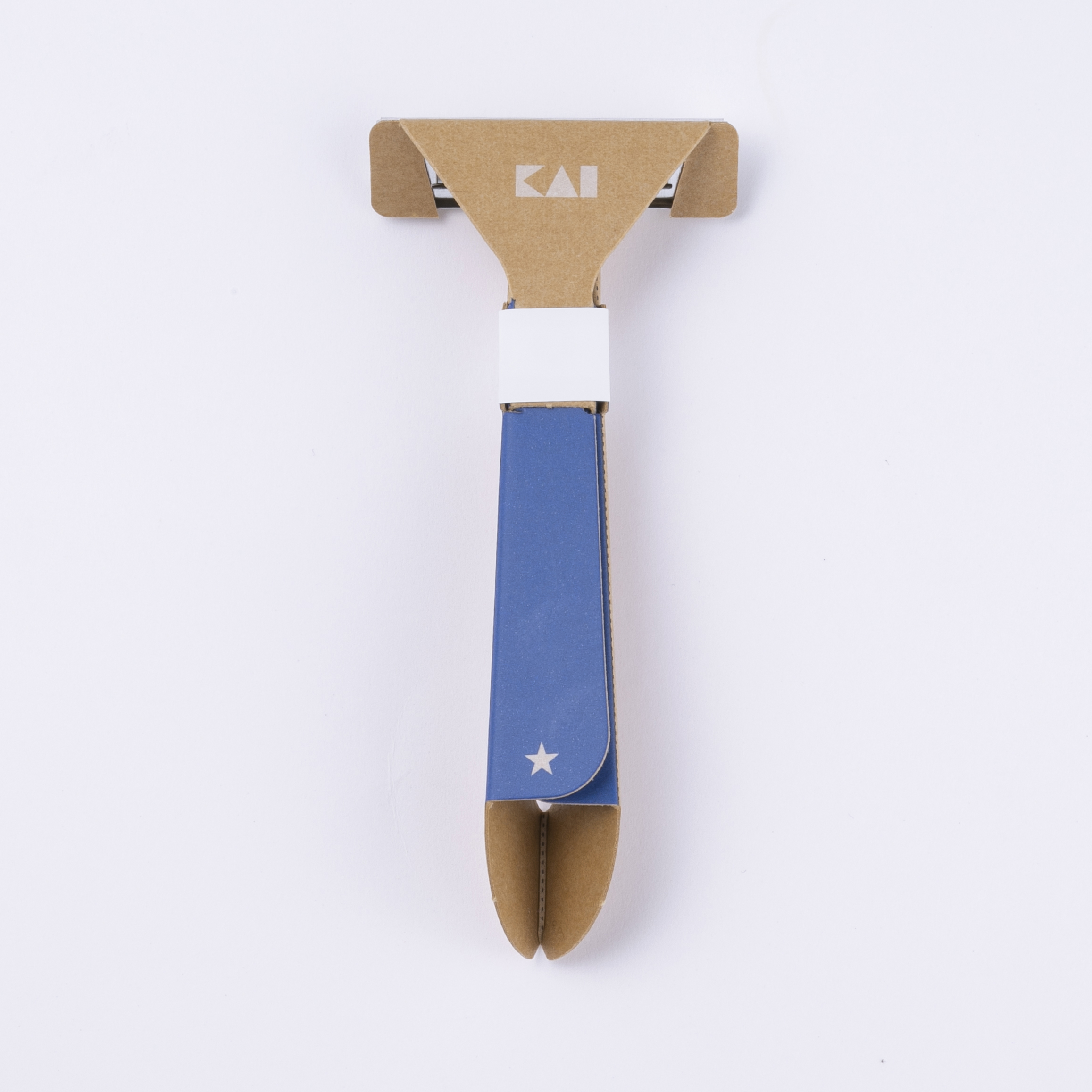 ハンドルに紙、刃体(ヘッド部含む)に金属を使用し、“脱プラスチック”※を実現した、折り紙のように一枚の紙を組み立てて使う紙カミソリ。
