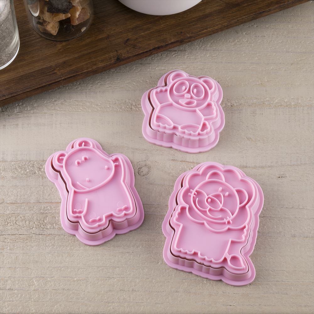 らいおんくん、かばさん、ぱんださんの3種類のクッキーが作れる抜き型とスタンプ型のセットです。(日本製)簡単にかわいいキャラクターを再現することができます。ハロウィンやバレンタインといったイベント時だけでなく、普段のお菓子作りやプレゼントにもどうぞ。かんたん♪サクサククッキーのレシピ付き。©ギンビス