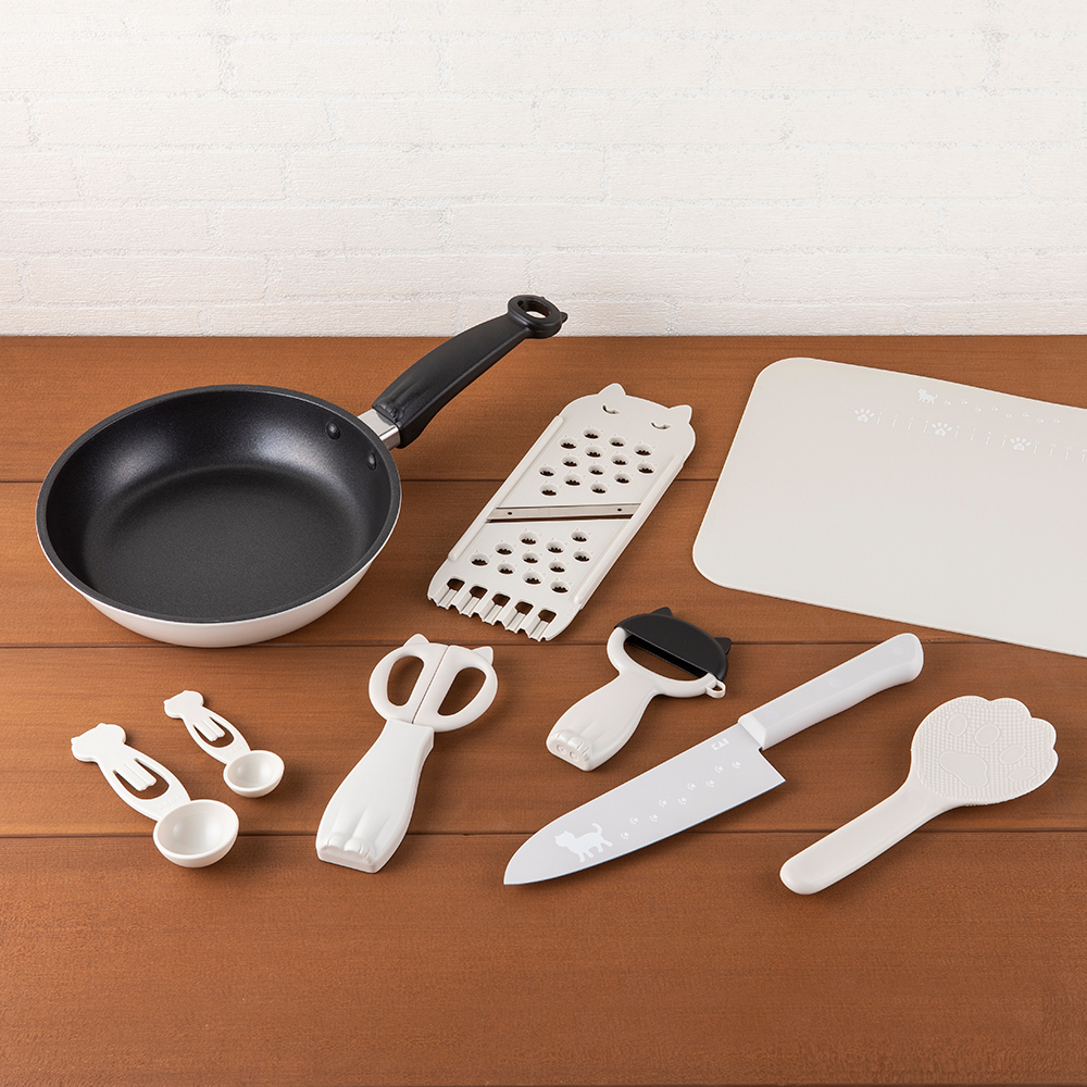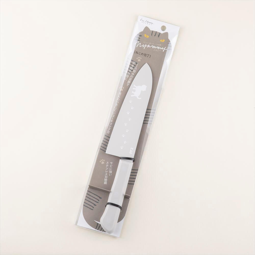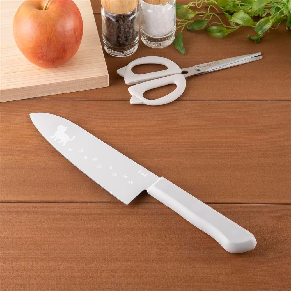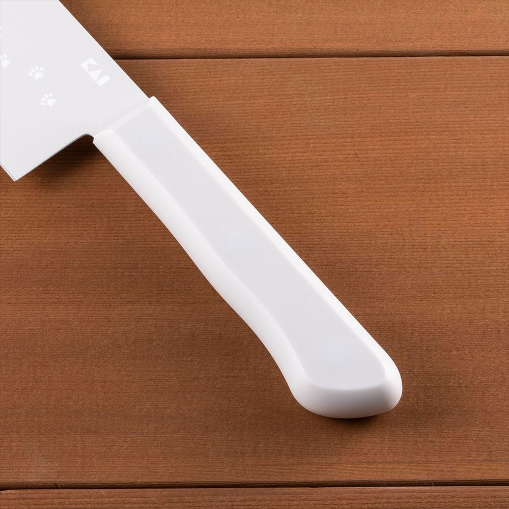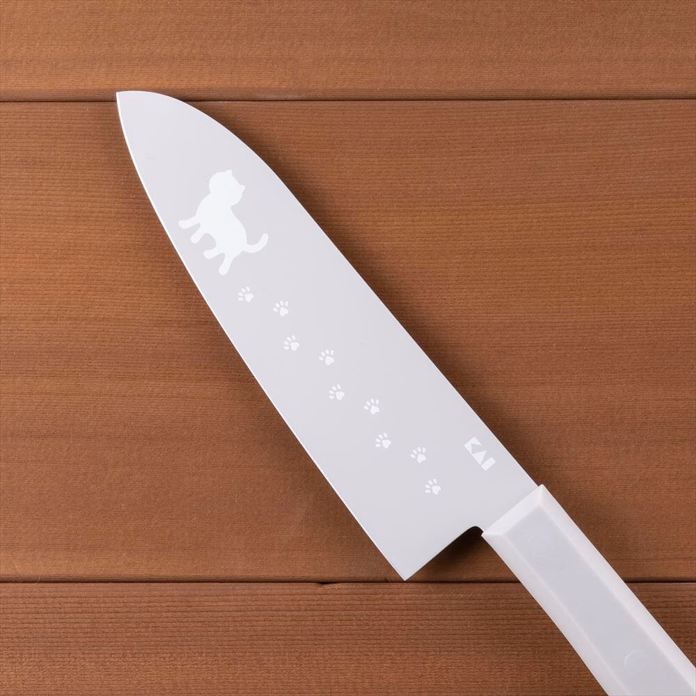 - \新色 ウォームグレーカラー登場/“ねこと一緒に楽しくお料理!”当社売れ筋商品の性能を活かしつつ、キッチンの雰囲気を邪魔しない形でネコモチーフを取り入れました。ネコ好きの方もそうでない方も『欲しい!使いたい!』と思える、ほどよいネコ感を大切にしています。刃体にはサビに強いステンレス刃物鋼を採用し、お手入れのしやすいコーティングがなされています。ネコの足跡が1cm刻みになっているので、切る際の目安になります。使いやすい165mmの刃渡りです。