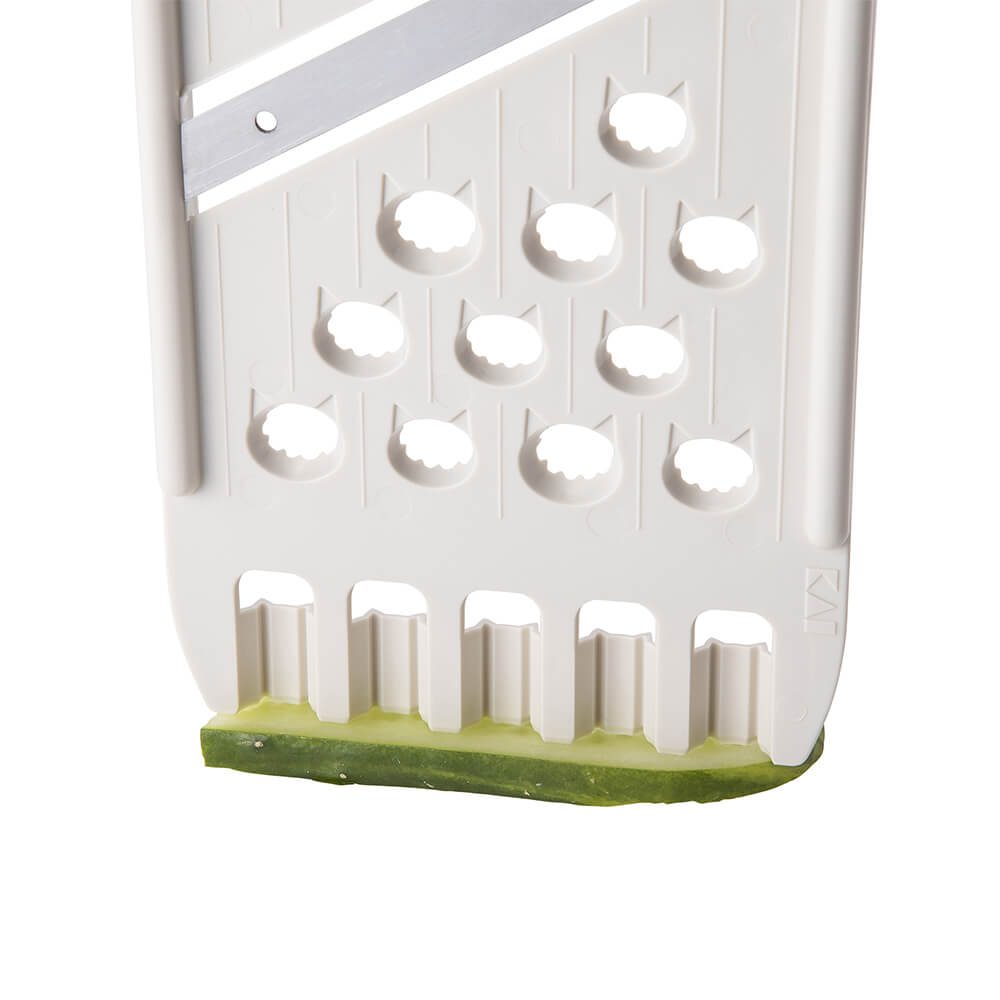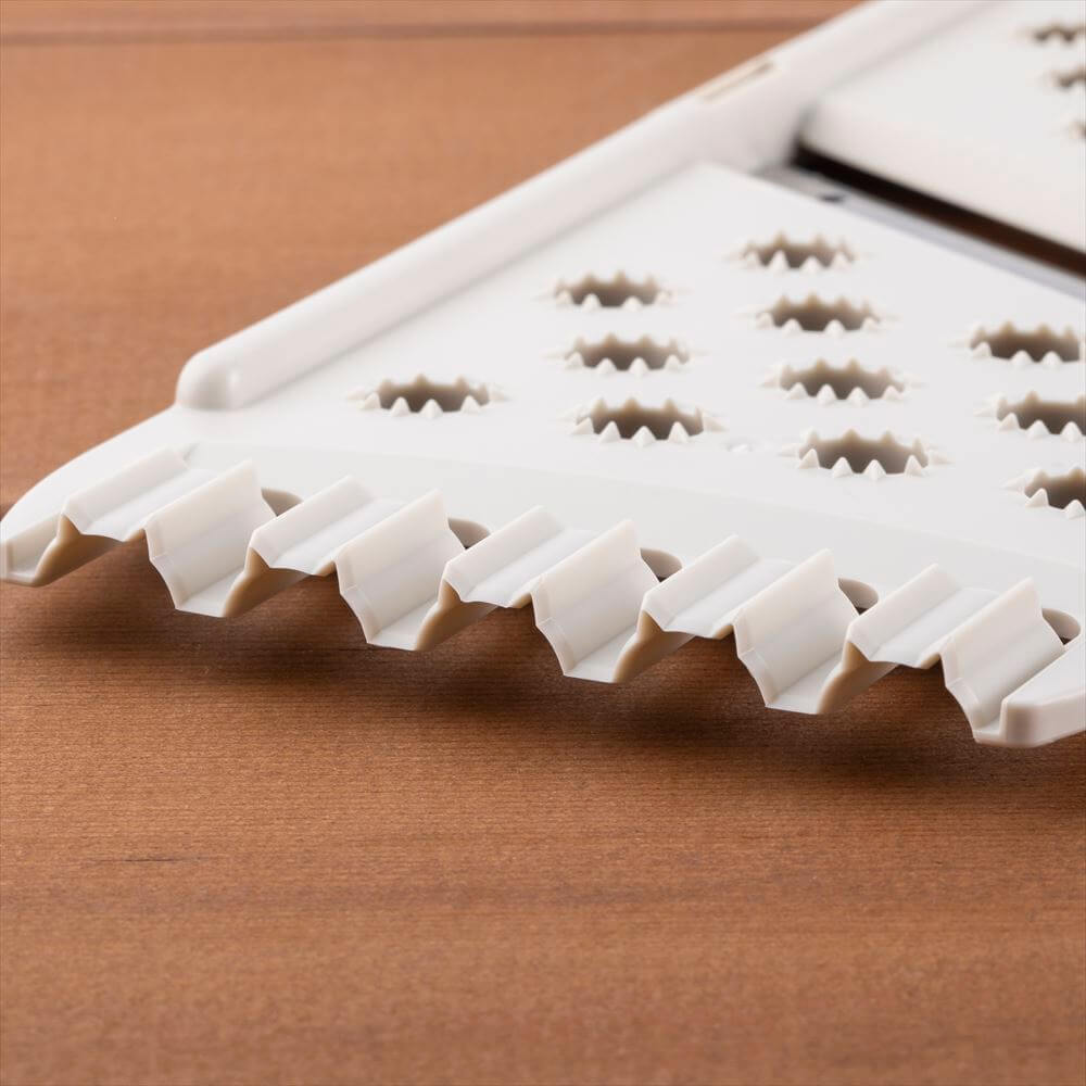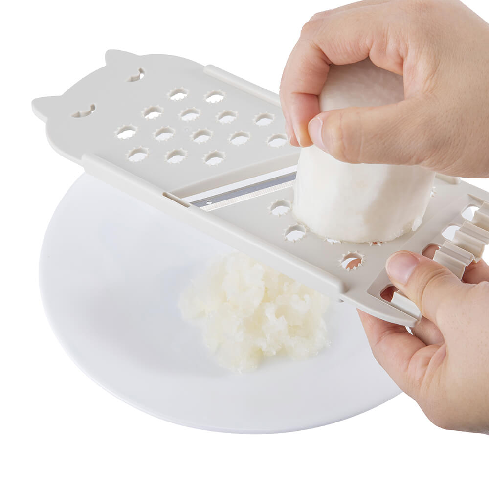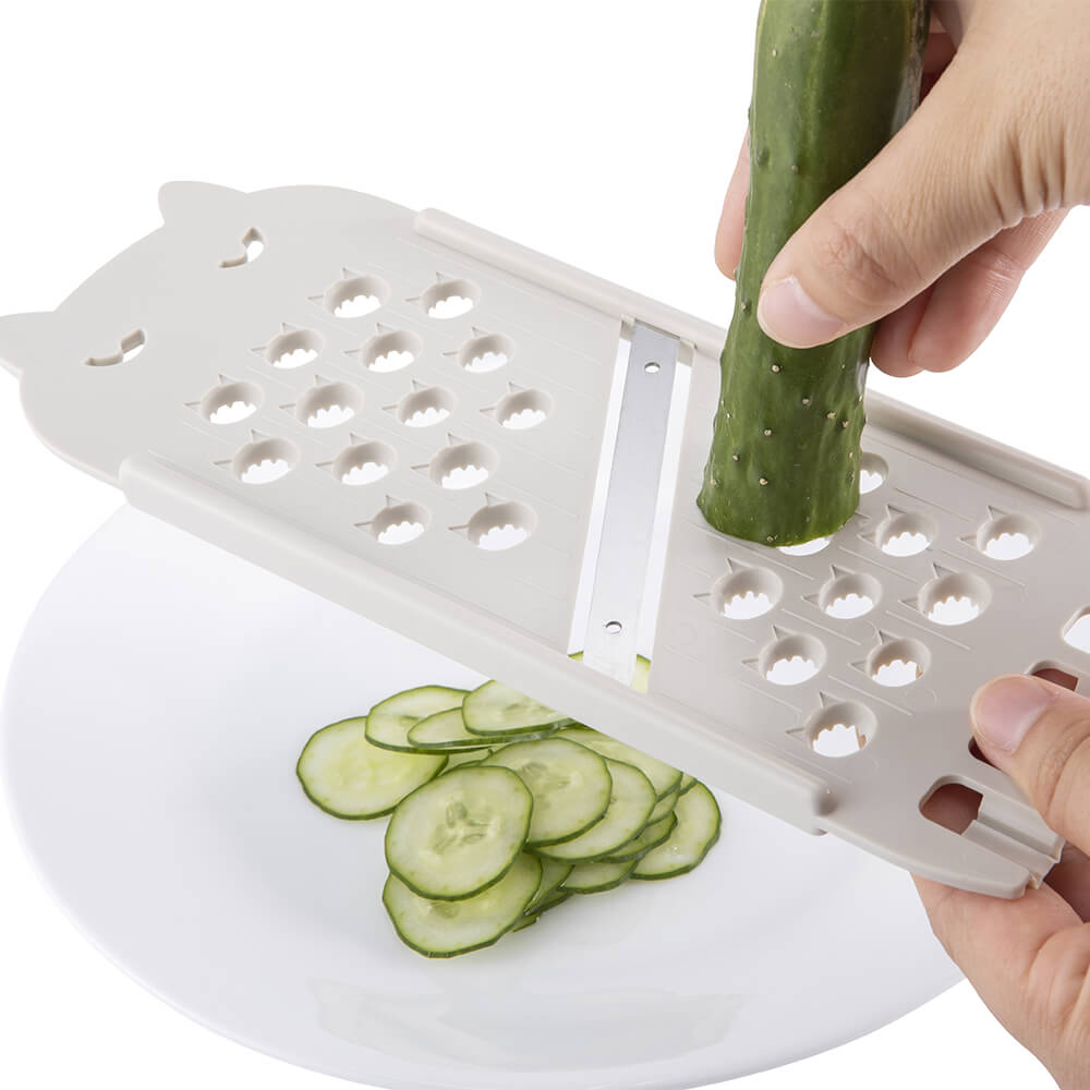 - \新色 ウォームグレーカラー登場/“ねこと一緒に楽しくお料理!”当社売れ筋商品の性能を活かしつつ、キッチンの雰囲気を邪魔しない形でネコモチーフを取り入れました。ネコ好きの方もそうでない方も『欲しい!使いたい!』と思える、ほどよいネコ感を大切にしています。スライス・おろし・飾り切りがこれひとつでできちゃう!スピーディに切れる両刃のスライサーです。本体上部だけでなく飾り切り部分にもネコモチーフが取り入れられており、薄切りのハムやチーズをネコ型のリボン状にすることができます。