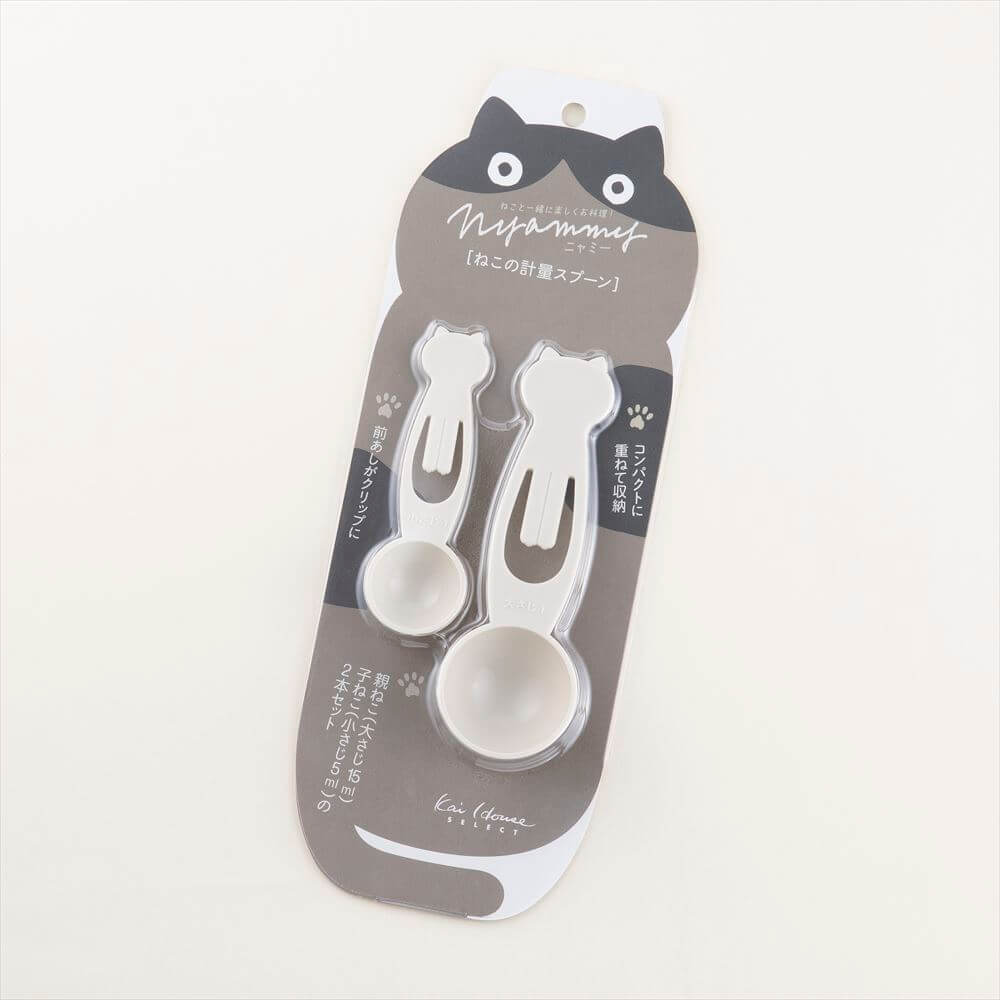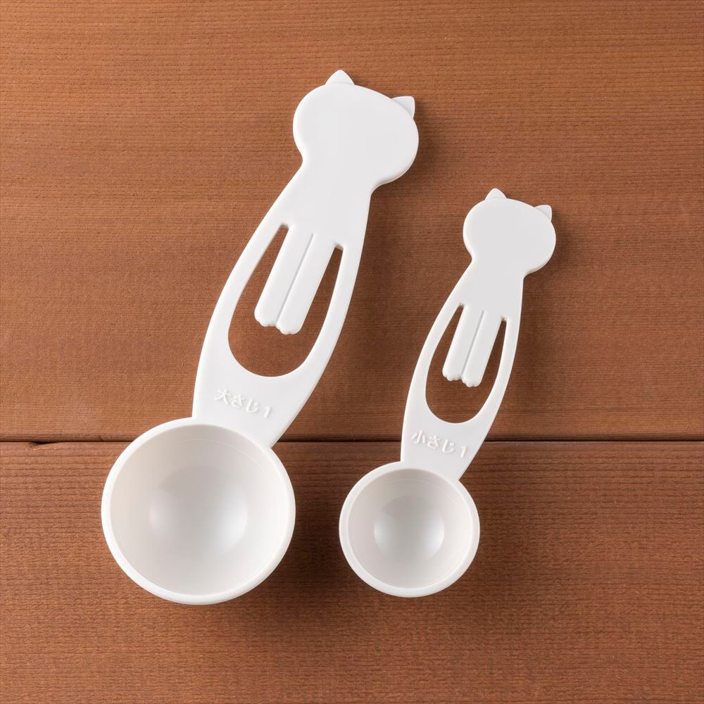 - \新色 ウォームグレーカラー登場/“ねこと一緒に楽しくお料理!”当社売れ筋商品の性能を活かしつつ、キッチンの雰囲気を邪魔しない形でネコモチーフを取り入れました。ネコ好きの方もそうでない方も『欲しい!使いたい!』と思える、ほどよいネコ感を大切にしています。親ねこ(大さじ15ml)、子ねこ(小さじ5ml)の2本セットで、重ねて収納できます。計量部に1/2ラインが入っており、大さじ1/2、小さじ1/2も計れます。前足がクリップになっているのでコーヒーや小麦粉などの袋を仮留めするのに使えます。