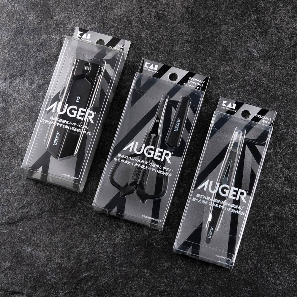 刃物のスペシャリストである貝印が、「身だしなみを整える時間」をより豊かで、より心地よいものへと導くべく誕生したのが、新ブランドAUGERです。乱雑になりがちな洗面台をすっきりと統一するスタイリッシュなブラックのデザインを採用した全9商品のグルーミングアイテムは、カミソリ、ツメキリ、ハサミなど幅広いツールを取り扱う貝印だからこそ実現できた、ハイパフォーマンスでハイクオリティなラインナップです。