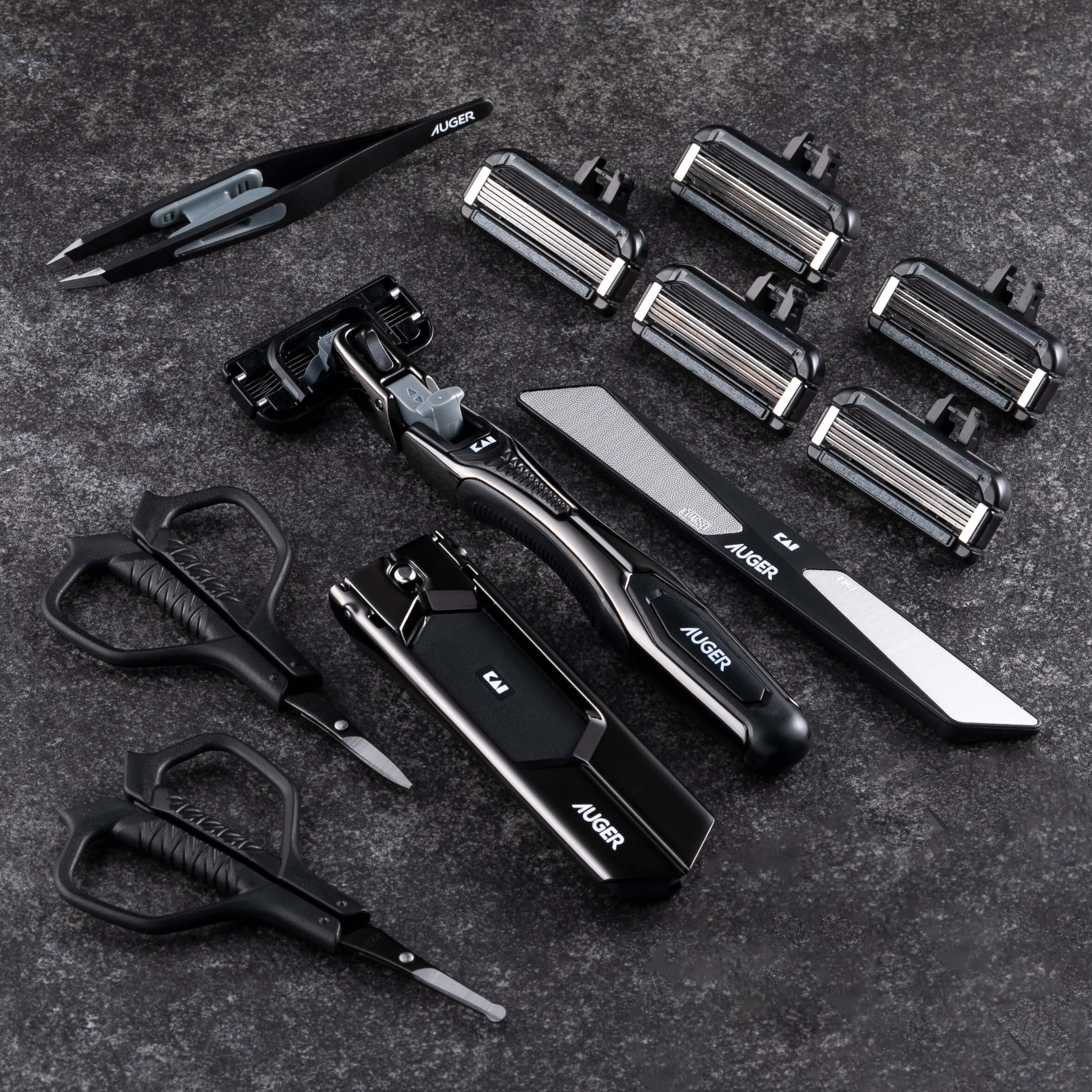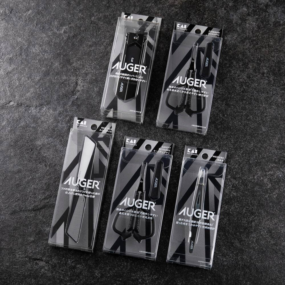 刃物のスペシャリストである貝印が、「身だしなみを整える時間」をより豊かで、より心地よいものへと導くべく誕生したのが、新ブランドAUGERです。乱雑になりがちな洗面台をすっきりと統一するスタイリッシュなブラックのデザインを採用した全9商品のグルーミングアイテムは、カミソリ、ツメキリ、ハサミなど幅広いツールを取り扱う貝印だからこそ実現できた、ハイパフォーマンスでハイクオリティなラインナップです。