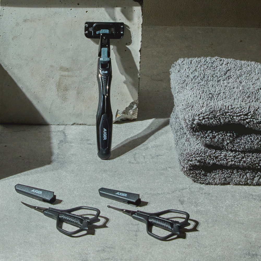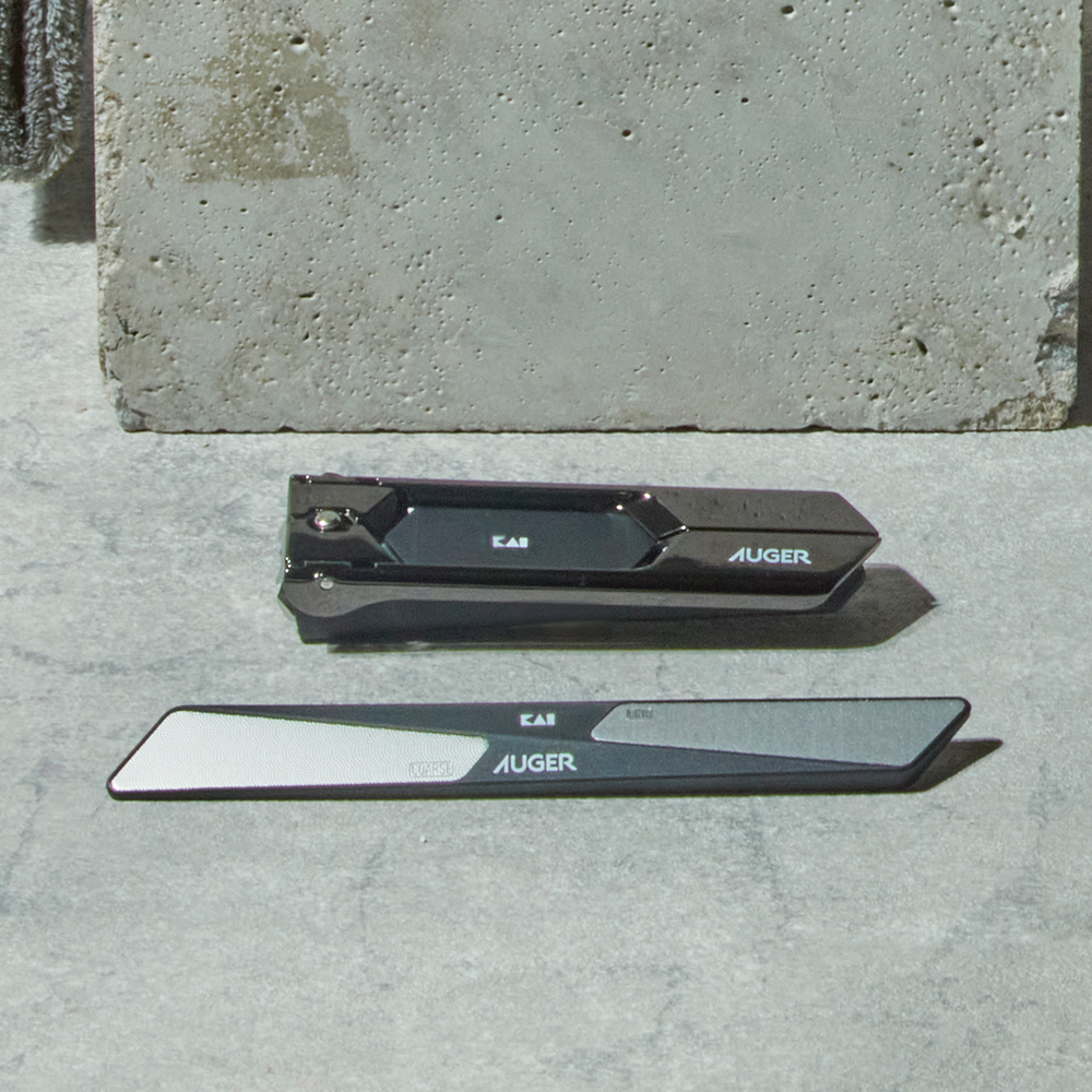 刃物のスペシャリストである貝印が、「身だしなみを整える時間」をより豊かで、より心地よいものへと導くべく誕生したのが、新ブランドAUGERです。乱雑になりがちな洗面台をすっきりと統一するスタイリッシュなブラックのデザインを採用した全9商品のグルーミングアイテムは、カミソリ、ツメキリ、ハサミなど幅広いツールを取り扱う貝印だからこそ実現できた、ハイパフォーマンスでハイクオリティなラインナップです。