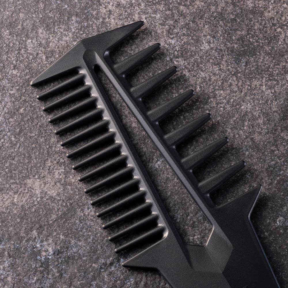 粗目、細目2種のコームで自由にヘアセットができます。また先端部は分け目をつけたヘアスタイリングに便利な形状です。