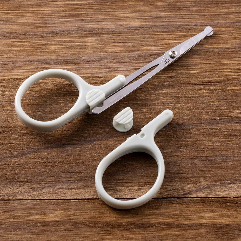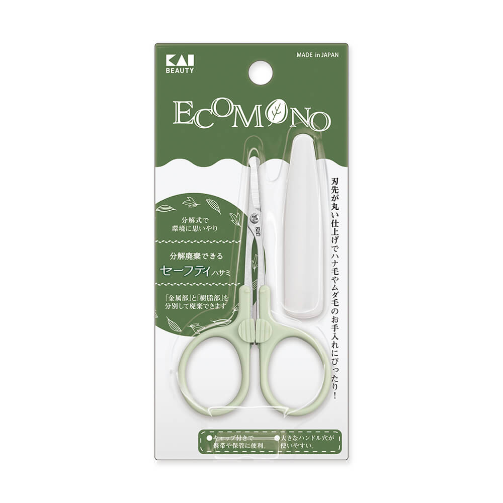 「金属部」と「ハンドル部分(樹脂部)」に分解可能で、分別廃棄でき環境に優しい設計。 刃先が丸い仕上げでハナ毛やムダ毛のお手入れにもぴったりな、セーフティハサミです。[日本製]