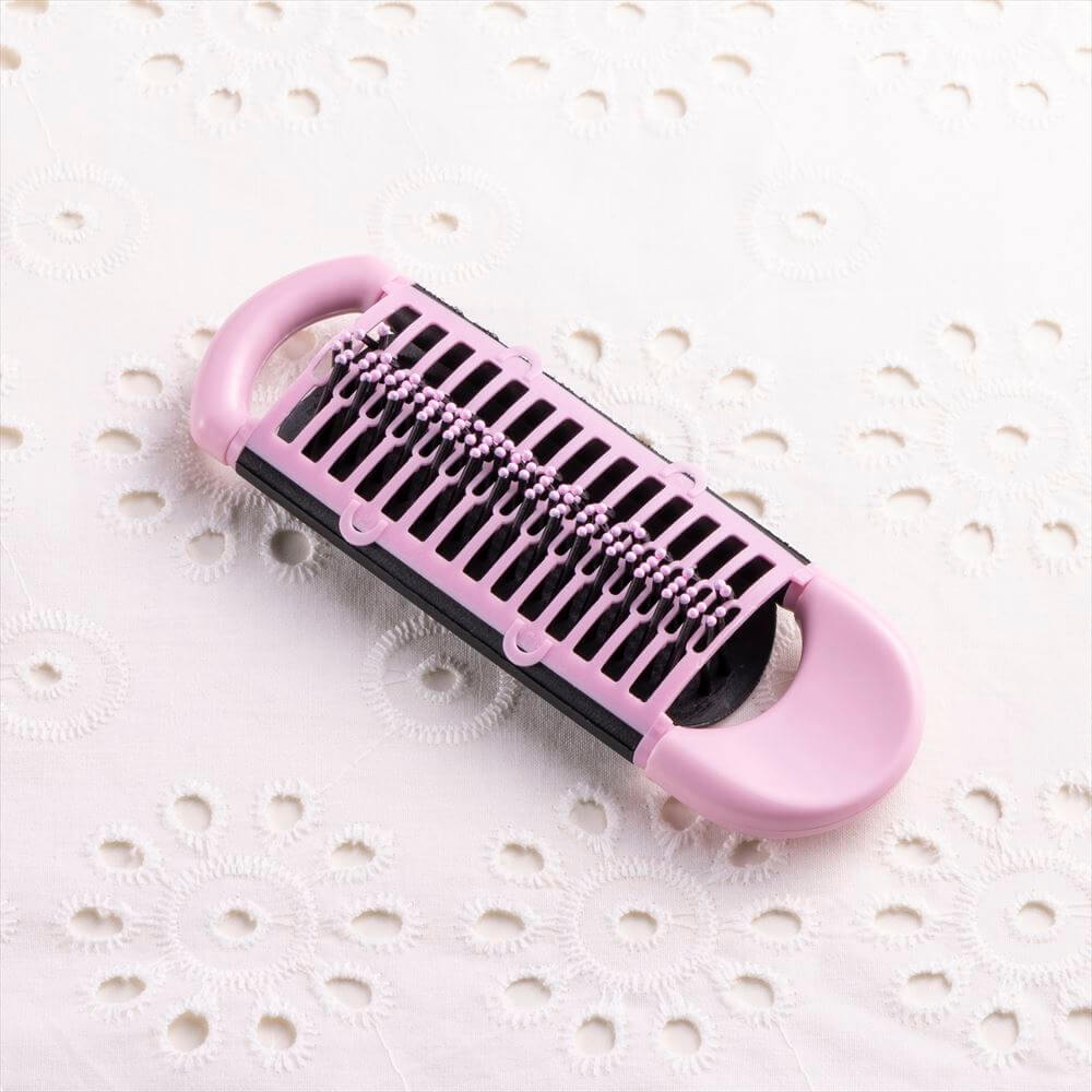 ブラシの先端が丸くなっているため頭皮にやさしい設計となっております。ブラシ部を折りたためるので、ポーチ収納や携帯にも便利。