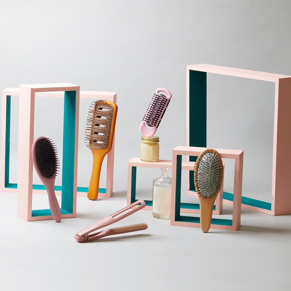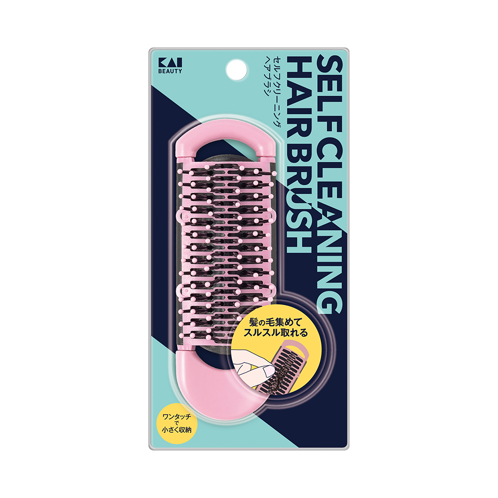 ヘアブラシをたたむと絡まった毛が自動的に集まるので、いつでも清潔に使用することができる、セルフクリーニングヘアブラシです。