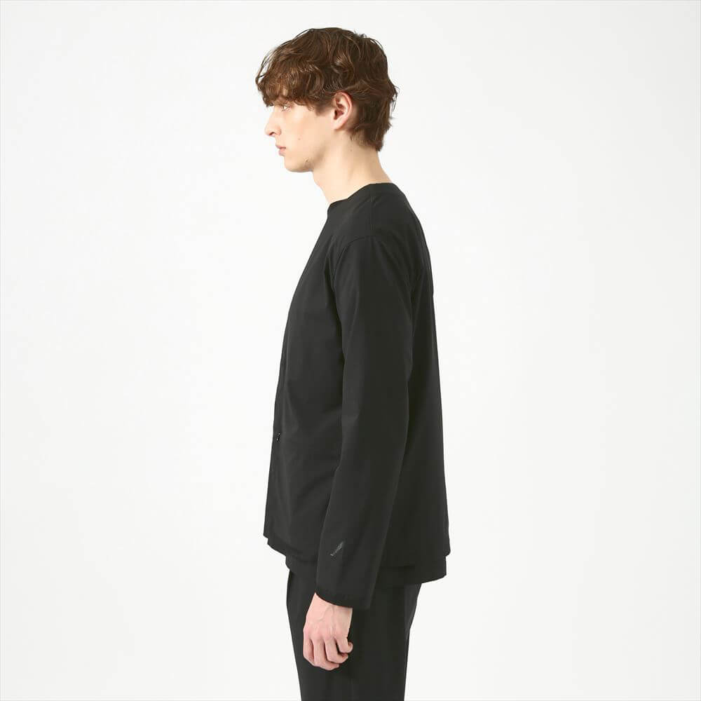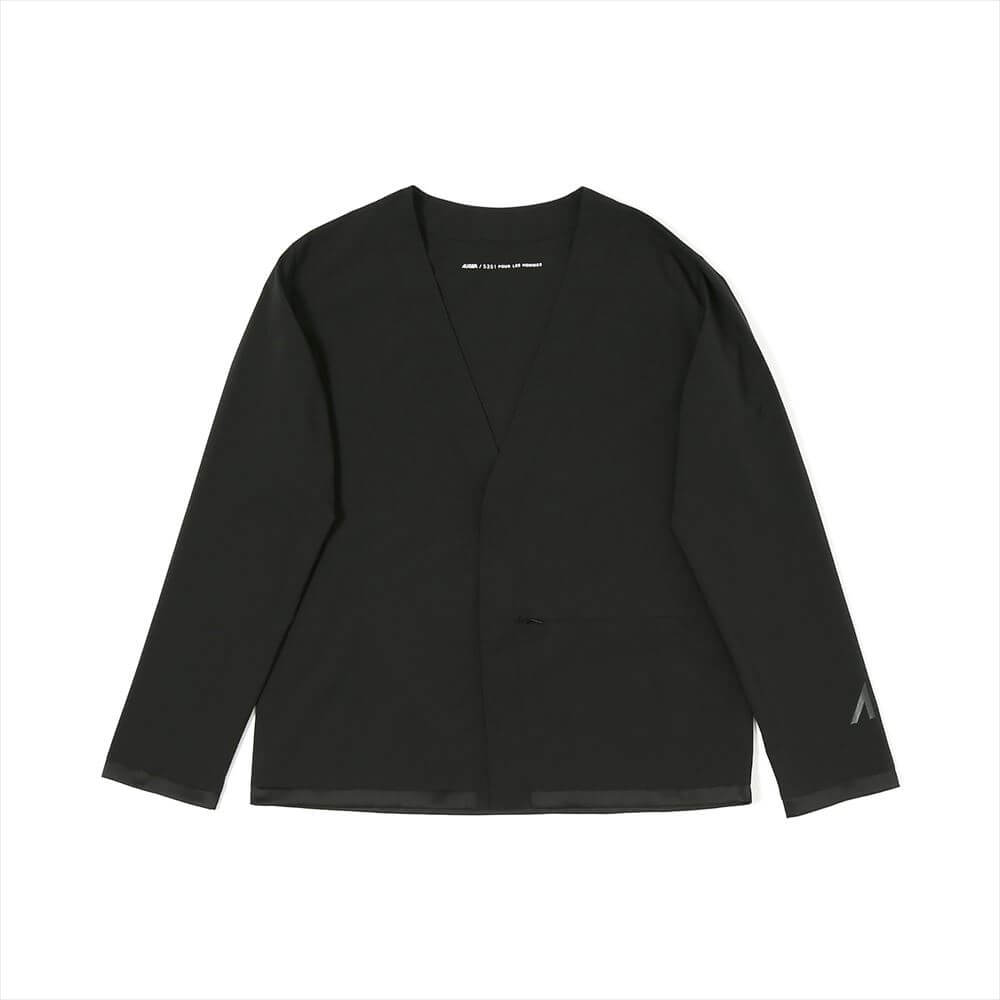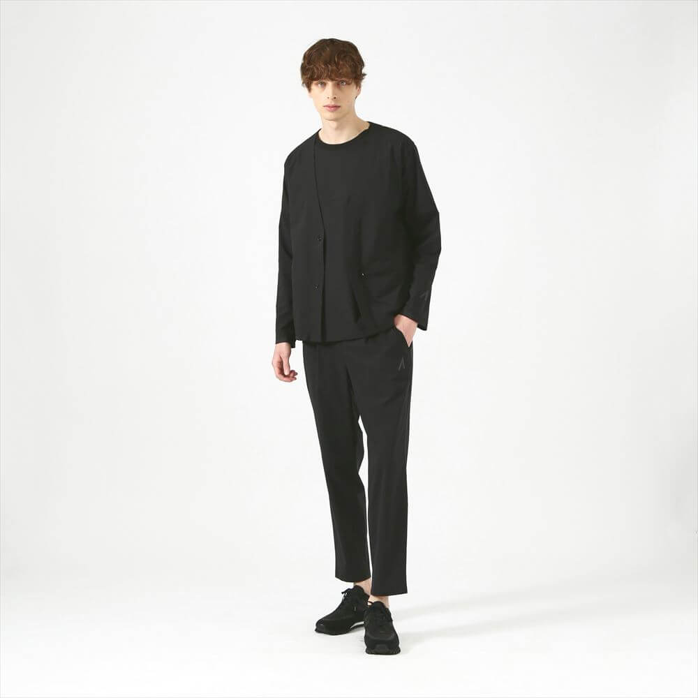 AUGERと5351プール・オム共通のブランドカラーであるブラックをベースとしたシックなデザイン。スタイリッシュなカーディガンとイージータックパンツのセットアップのため、外出時はもちろんルームウェアとしても幅広いシーンで着用が可能。少しだけリラックス感のあるシルエットに、軽い生地の組み合わせが、心地よい着心地を生み出します。