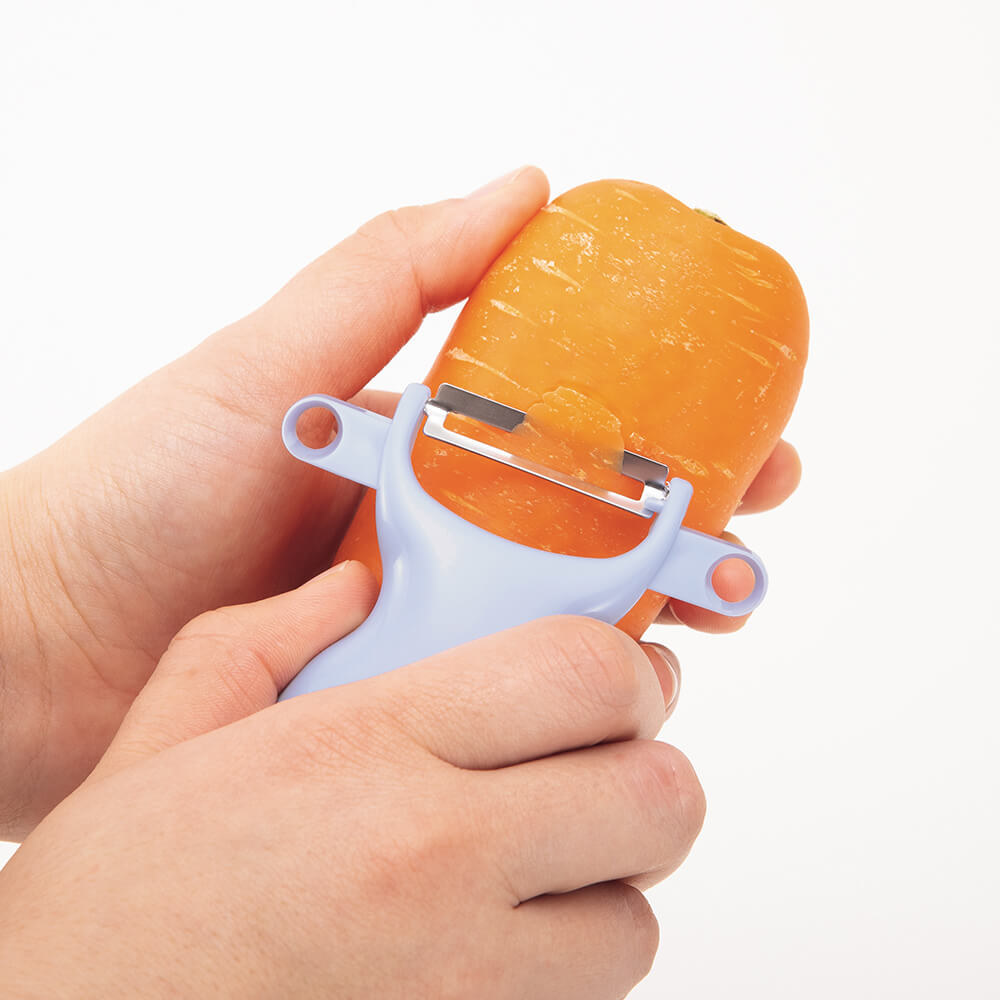 子どもの手に合ったハンドルサイズと形状の、芽とり付きピーラーです。(対象年齢:7歳以上)