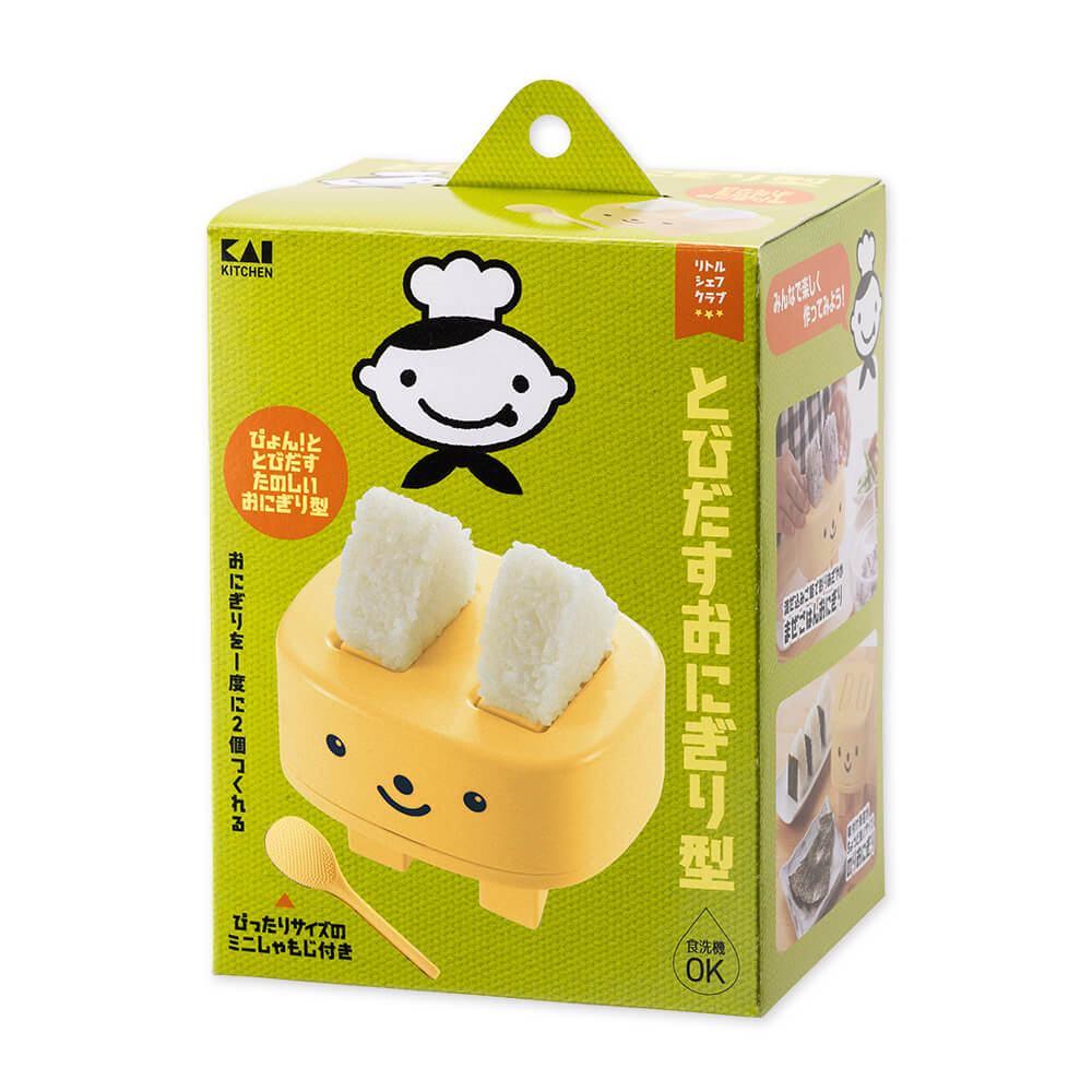 おにぎりを成型した後に型枠を押し下げると、おにぎりがぴょんととびだす仕様のおにぎり型です。[日本製]