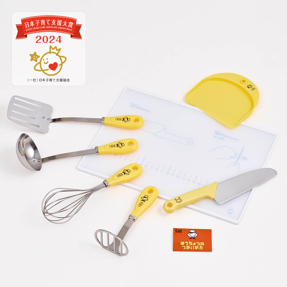 ギザ刃の包丁や基本のツールが入った人気のセット。[日本製]