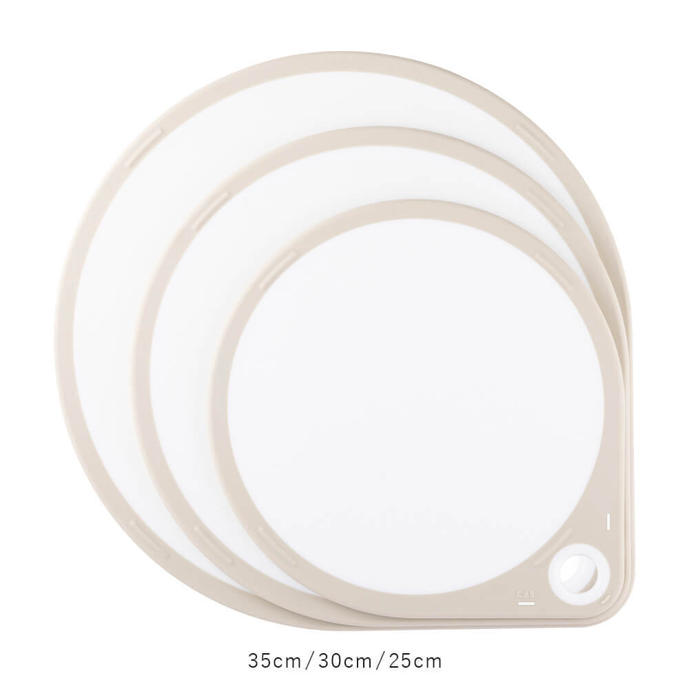 奥行きたっぷり、ひろい作業スペースが魅力のまるいまな板です。