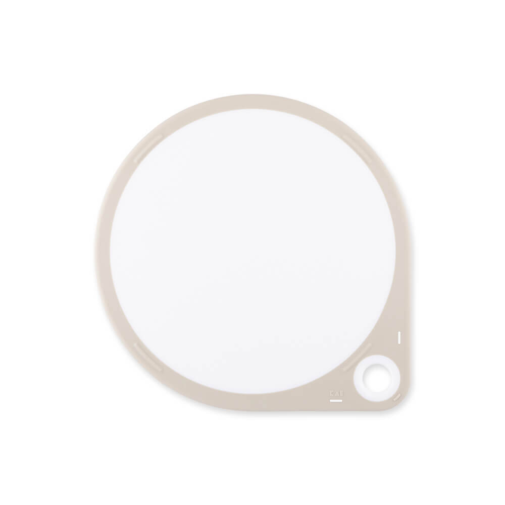 奥行きたっぷり、ひろい作業スペースが魅力のまるいまな板です。